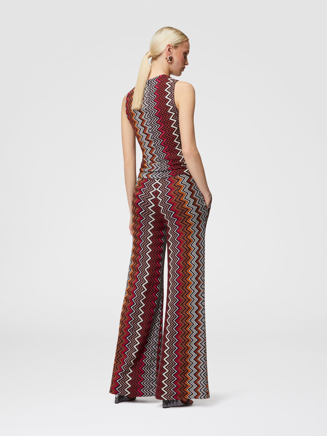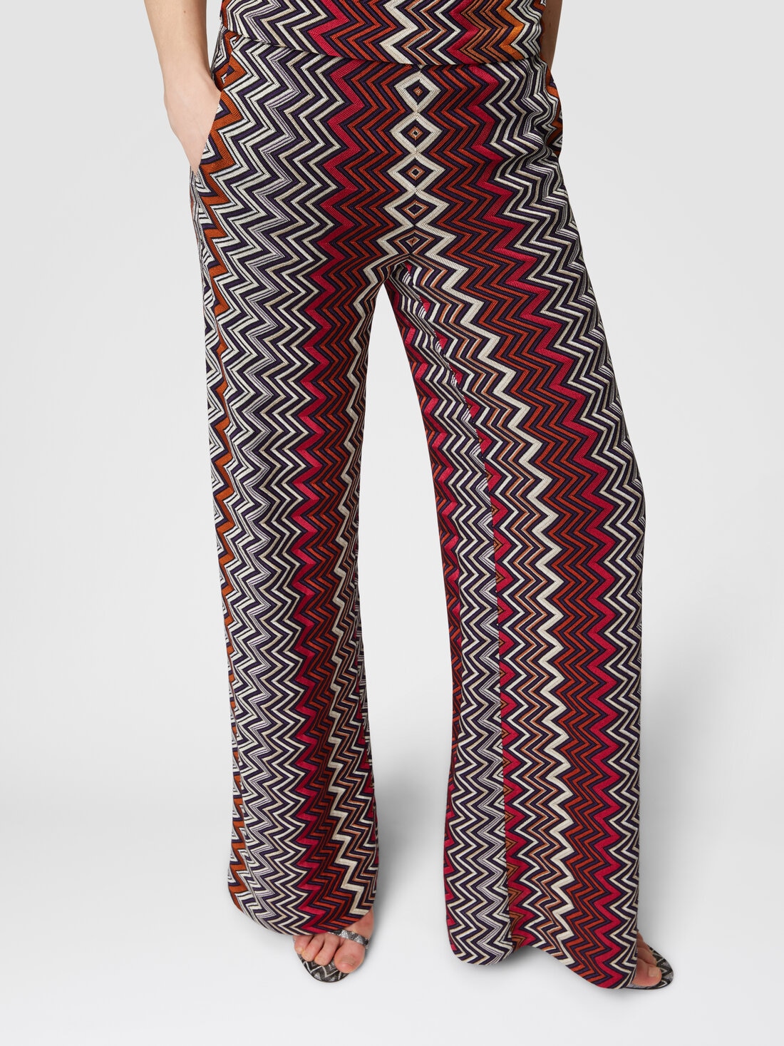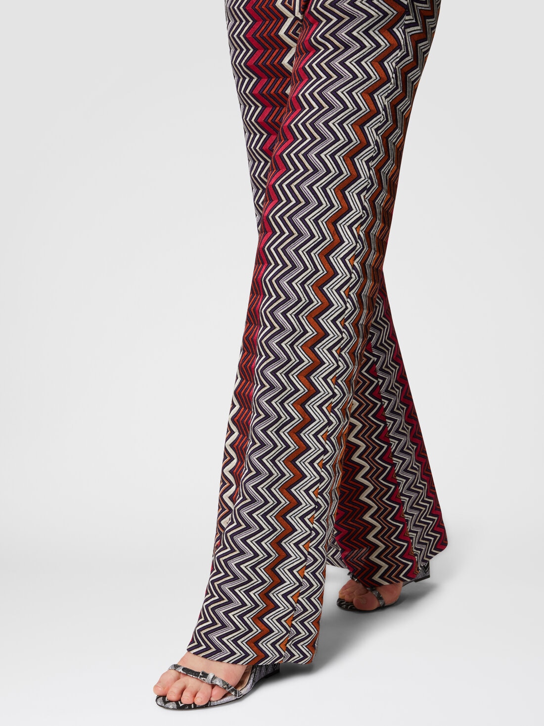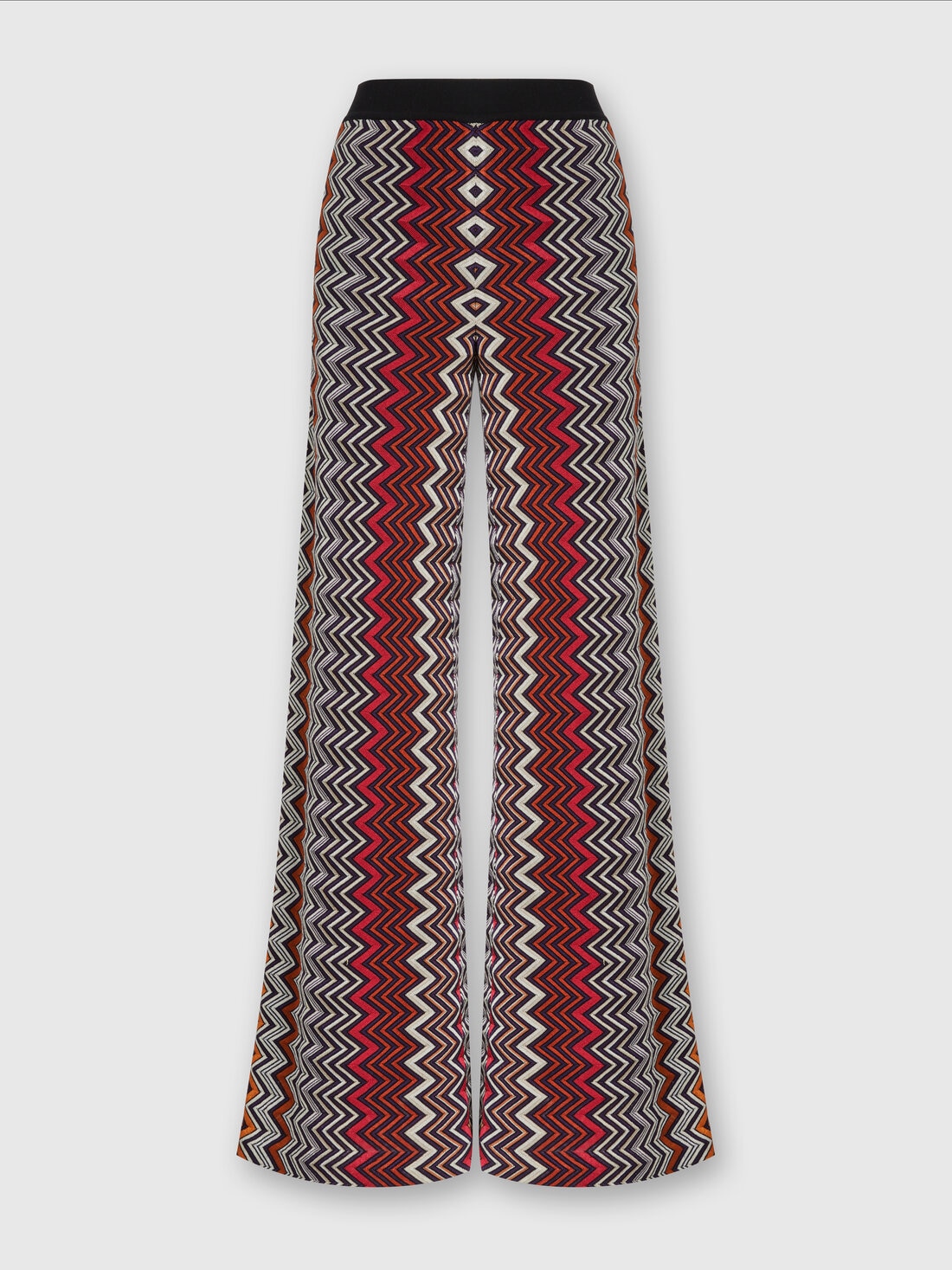 The zigzag palazzo trousers with flared hem are illuminated by the skilful raschel workmanship, which guarantees the blend of viscose and wool a glossy/matte finish perfect for giving a new touch to the daily look.