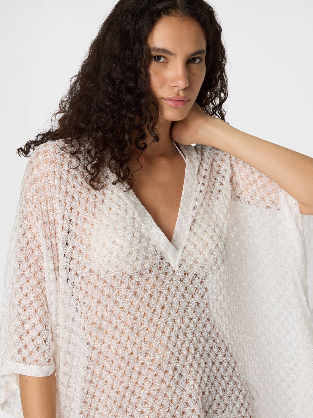 Short caftan cover-up in lamé viscose with raschel workmanship