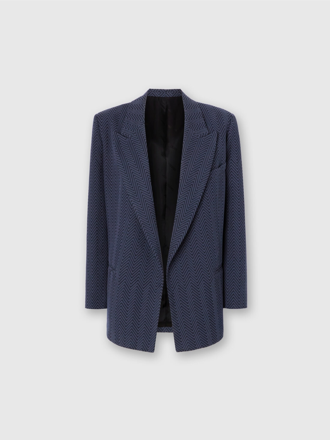 This deep V-neck single-breasted blazer for women is crafted from a cotton blend in raschel knit. Structured shoulders and the iconic Missoni zigzag give it a bold graphic appeal—perfect for interpreting elegance with a contemporary edge.