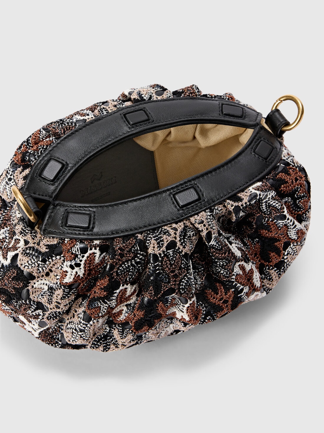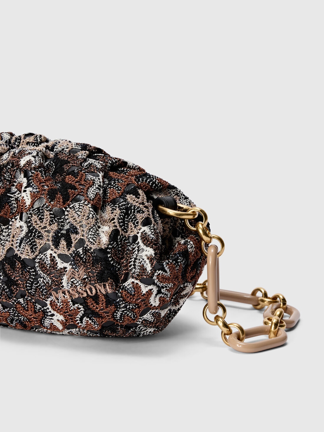 To complete your outfit with a touch of elegance, this women's clutch bag in lace-patterned fabric is made from a viscose and lamé blend and features a removable shoulder strap. A refined accessory that brightens up your look with Missoni's unmistakable sophistication.