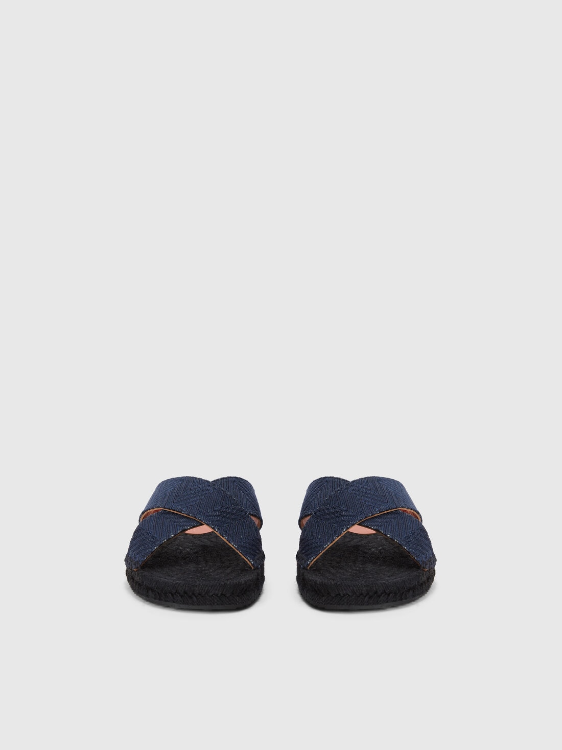 Slippers with double crossed strap and chevron pattern