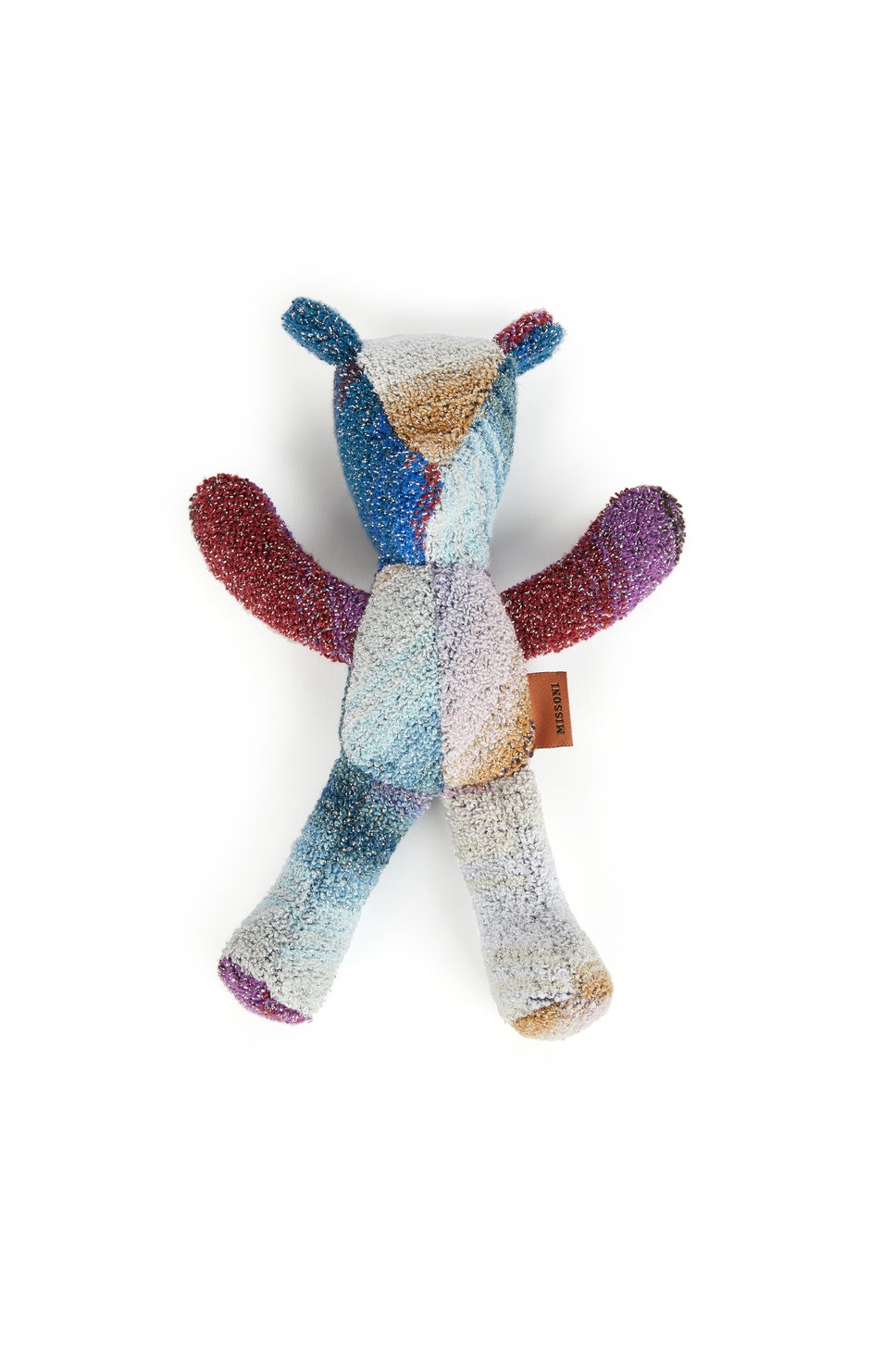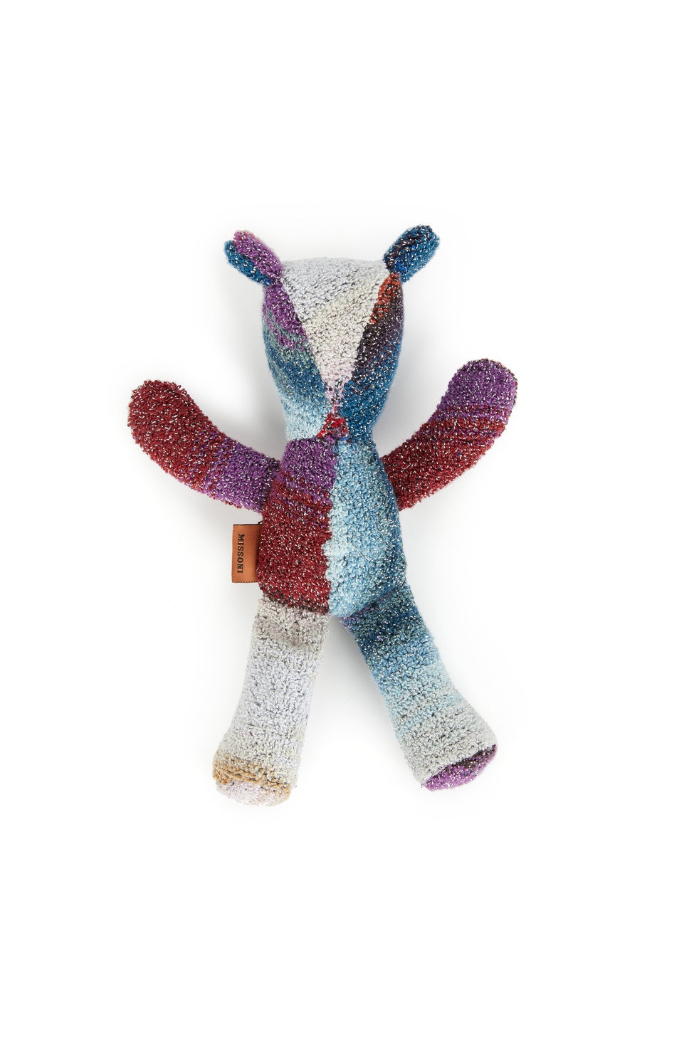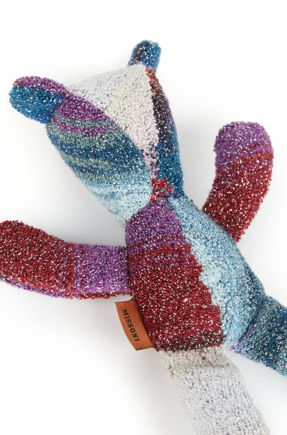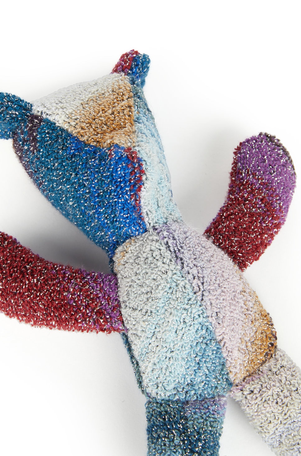 The puppet's fabric is woven from cotton and lamé threads to create a bouclé effect. A gift item with a playful and bright flair, perfect for giving joy to children and adults of every age and lending a colourful touch to every corner of your home.