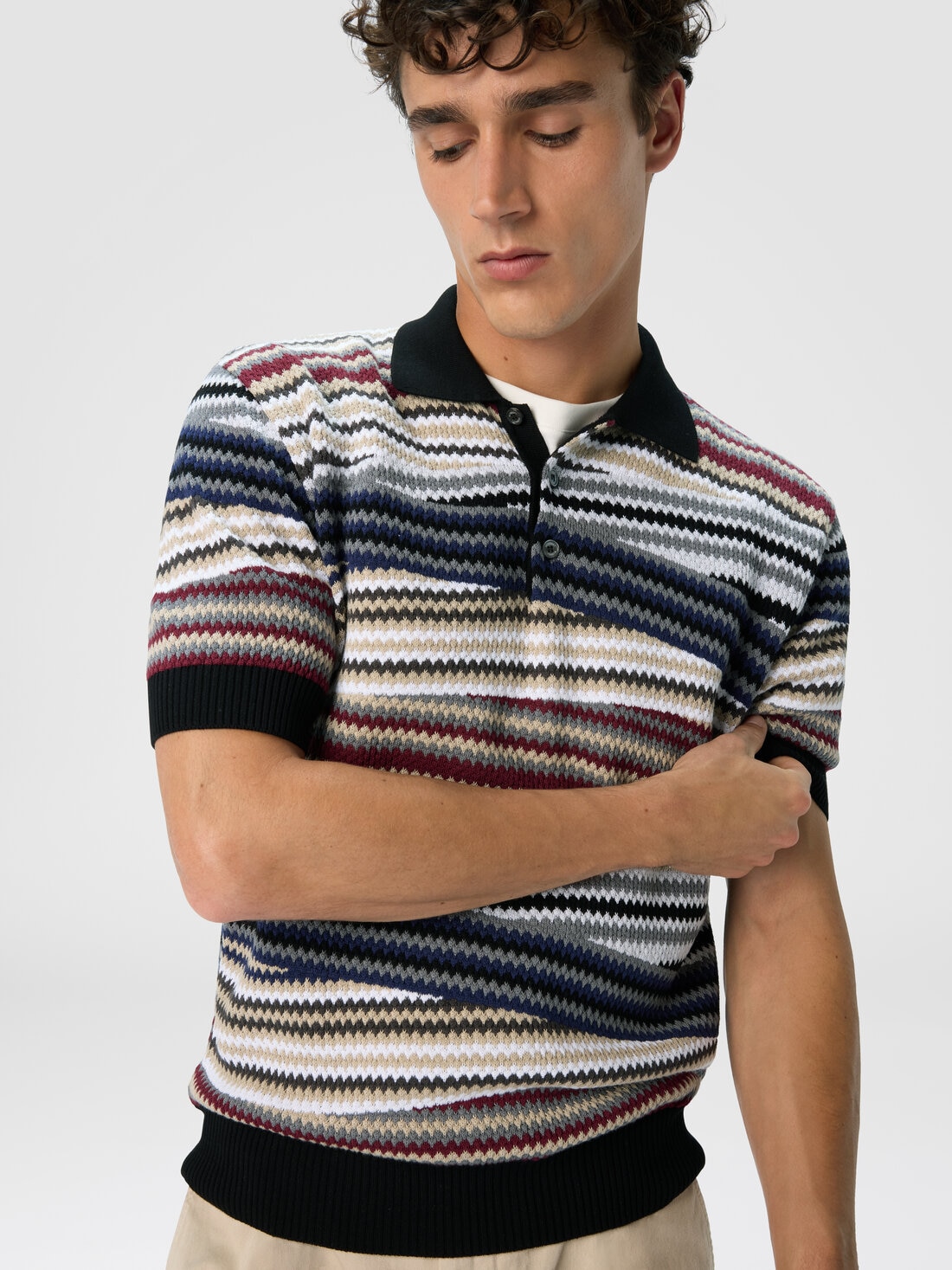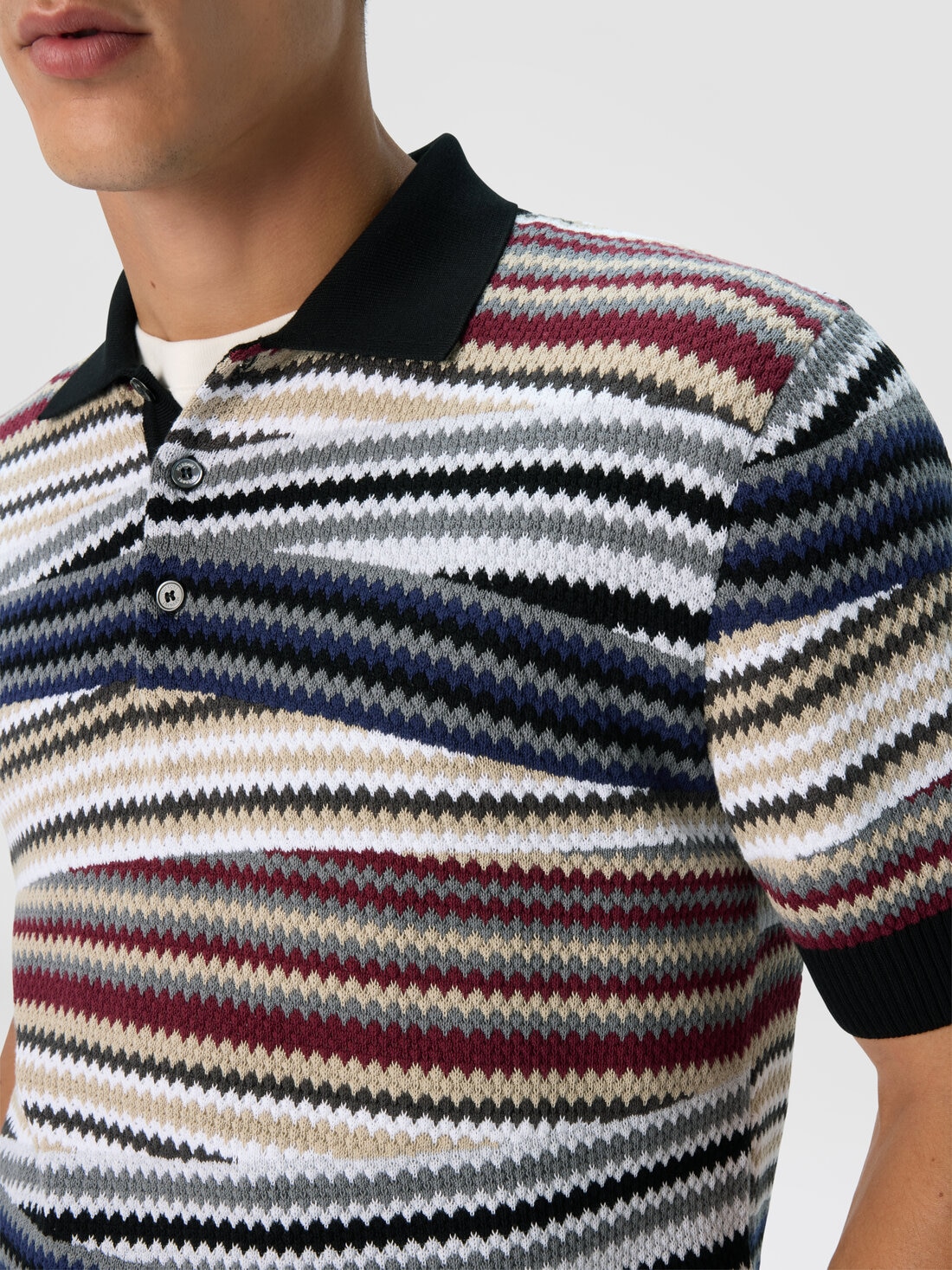 Short sleeve polo with buttons and striped zigzag pattern