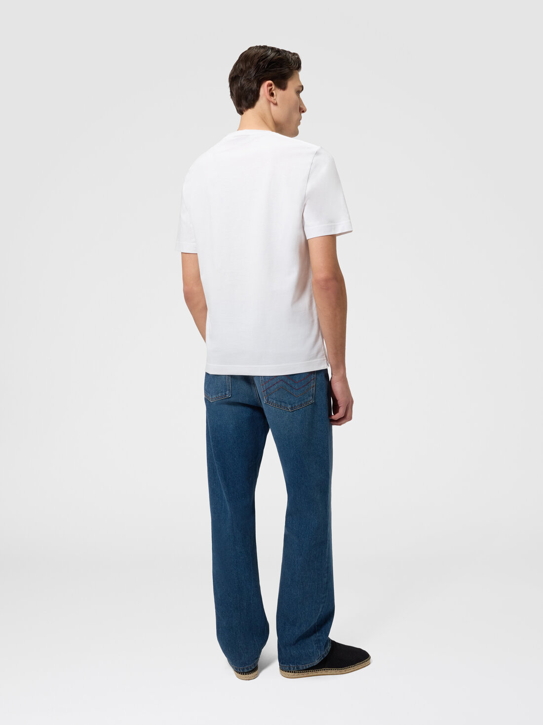 Clean lines and bold graphics define this men’s crew-neck T-shirt in cotton jersey, featuring a macro 3D zigzag print that reinterprets the Maison’s signature motif with a modern twist.