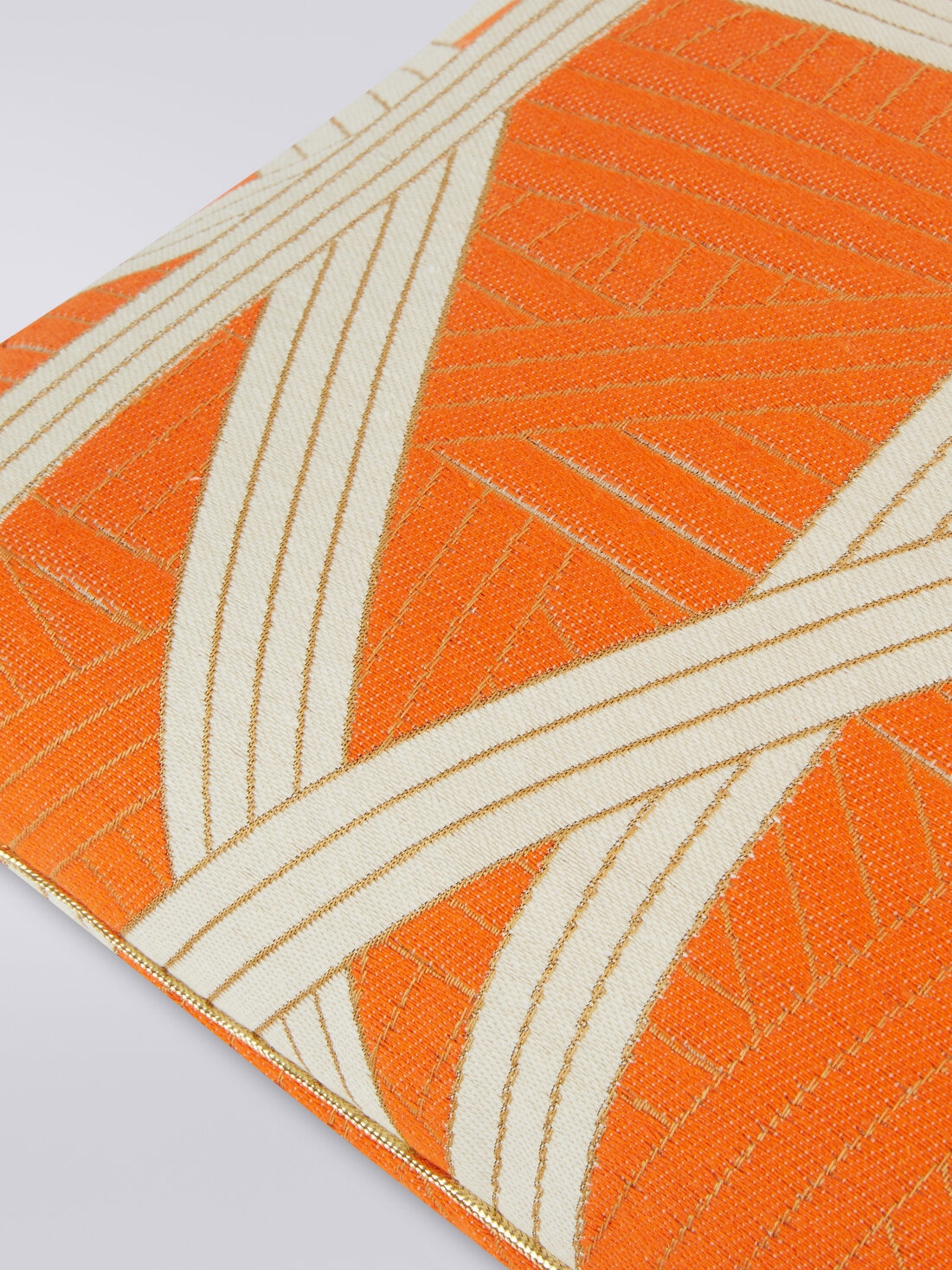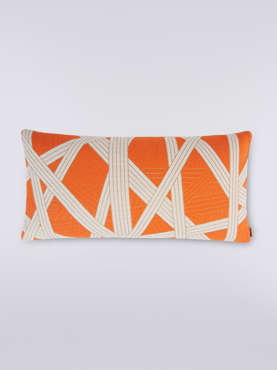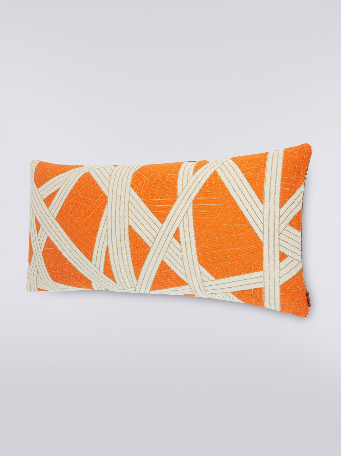 The Nastri cushion, measuring 30x60 cm, features elegant stitching and fine details such as gold trim. The Nastri pattern fits into MissoniHome's wide range of iconic motifs, offering an excellent example of textile craftsmanship that lends a touch of luxury and style to any room.
