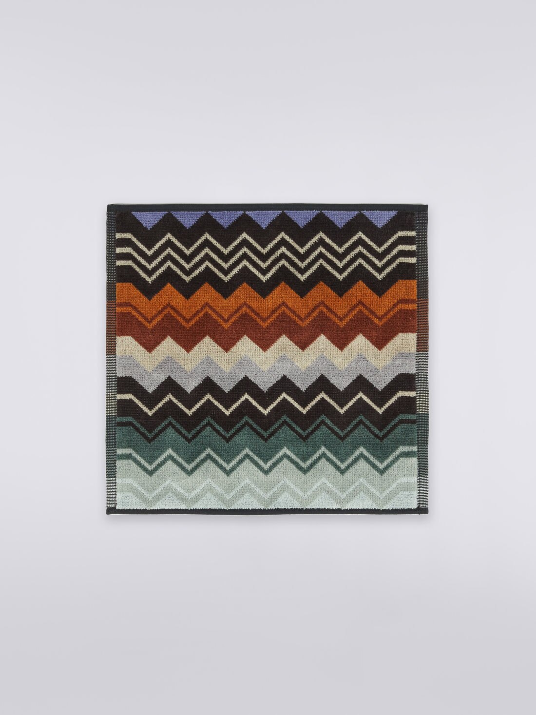 The 6-piece set of Giacomo washcloths is the quintessence of Missoni style: here, the quality of the velour cotton terry meets the definition of the chevron print, which dips into the striped edges to enliven this beautiful and timeless guest linen accessory.