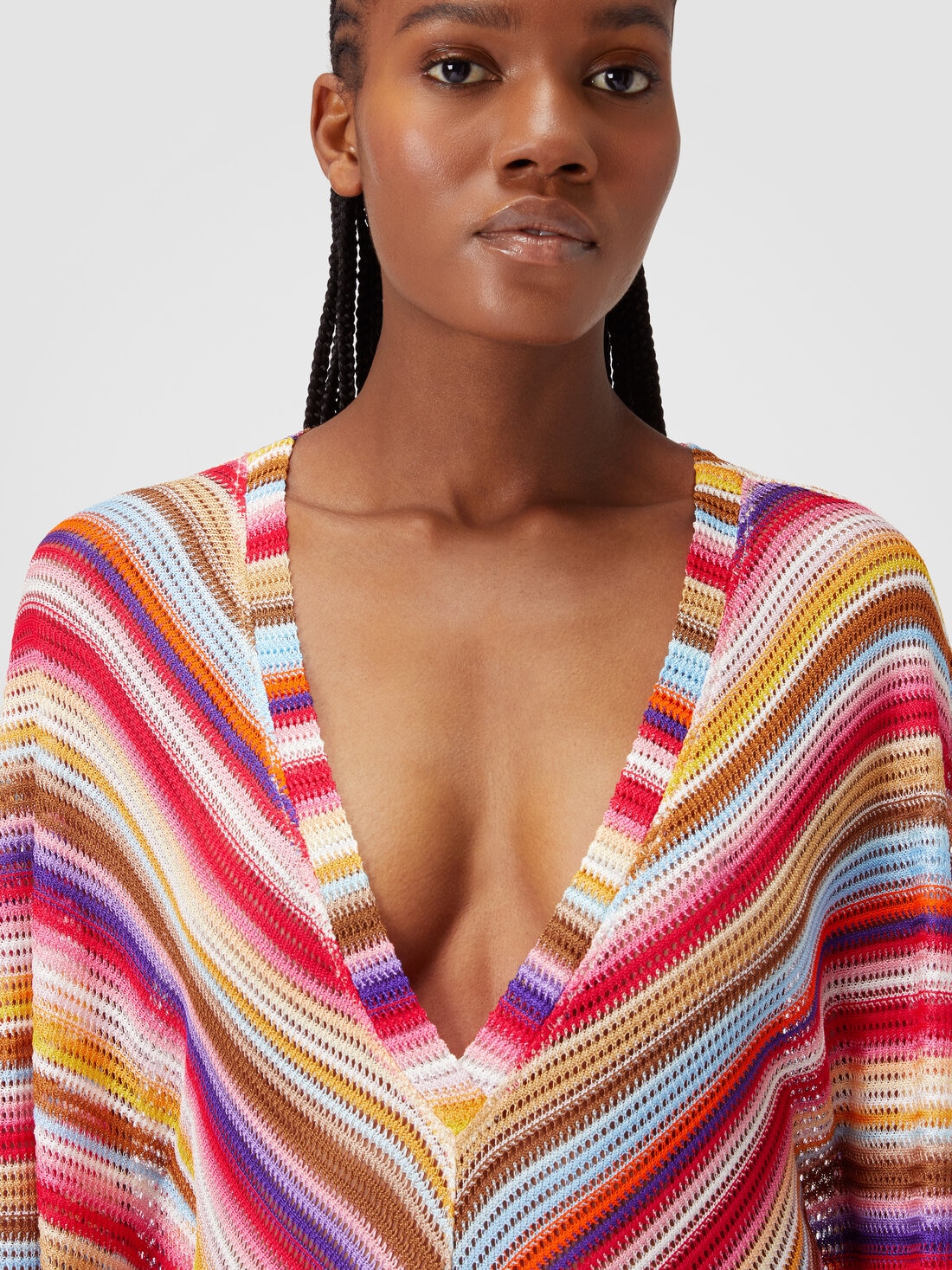 Long cover up kaftan in striped crochet