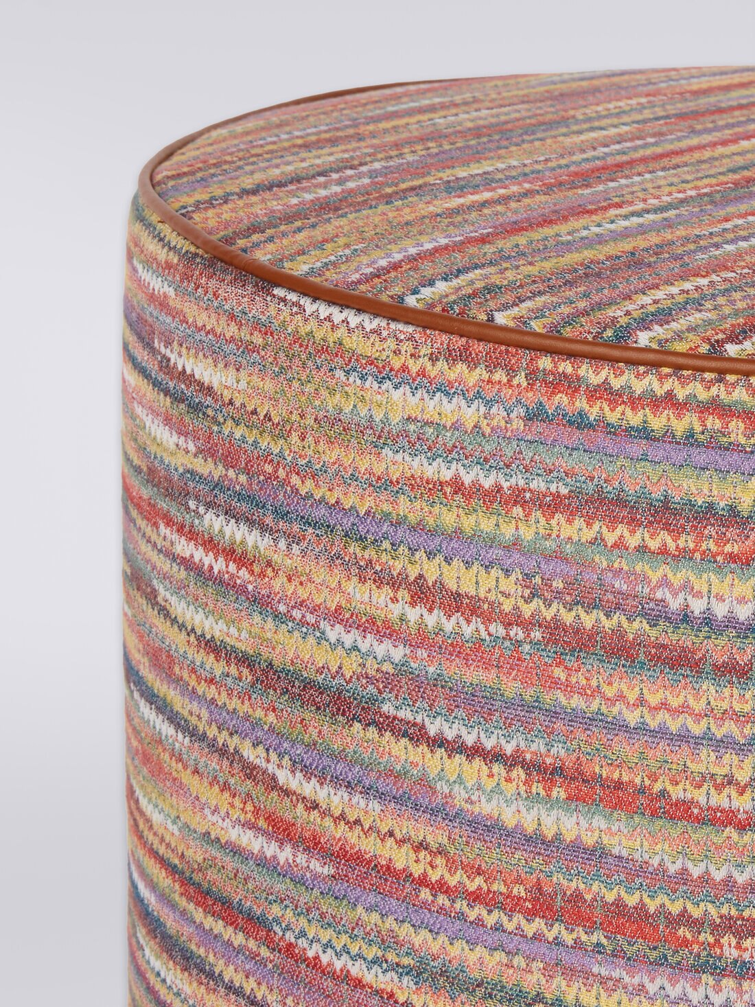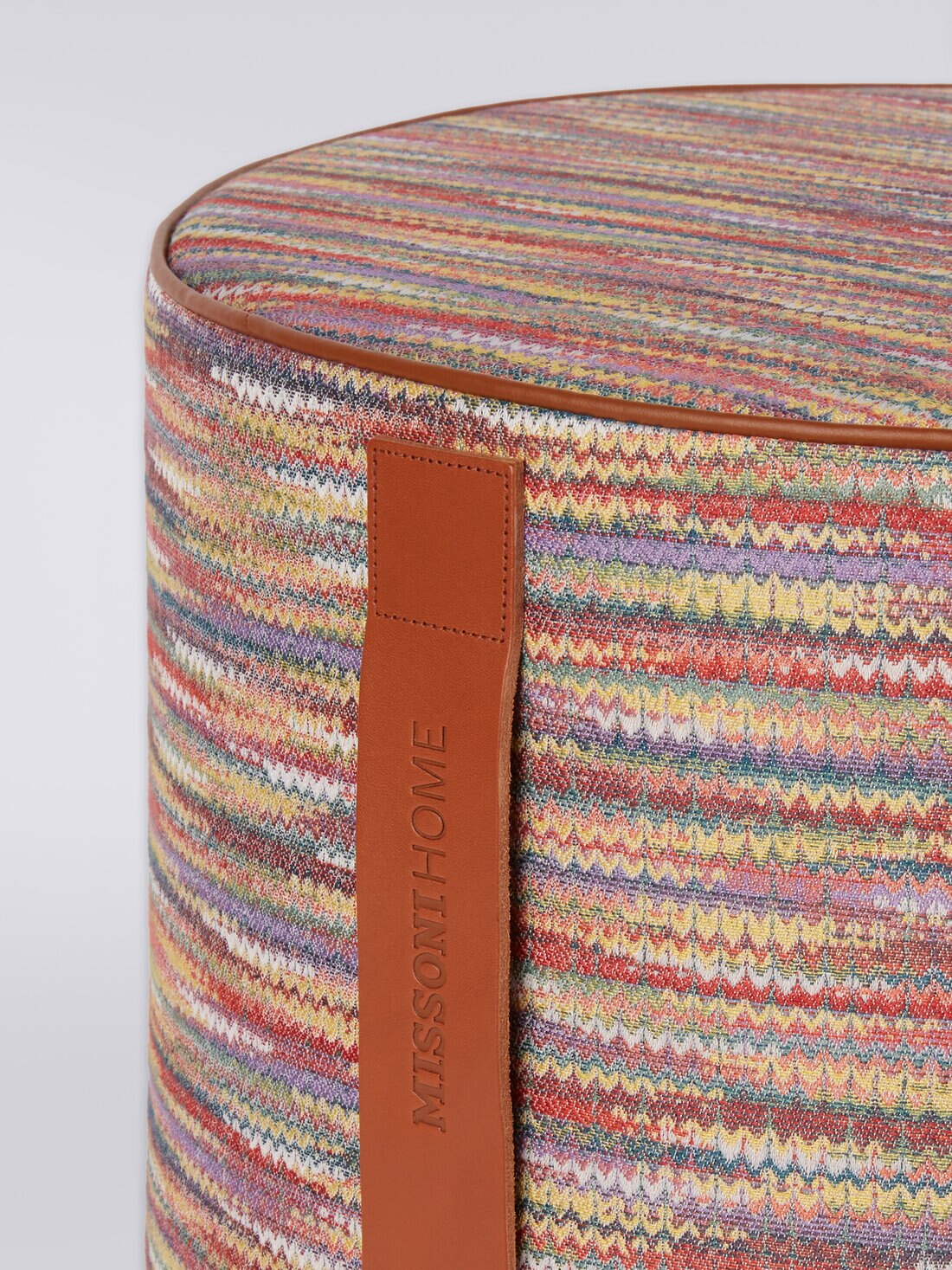 The 40x30 cm Biscayne cylindrical pouffe, made of slub viscose blend, is enriched with piping and a handle in refined logo-imprinted leather. It stands out as the iconic accessory to bring colour, comfort, and hospitality to every room of your home.