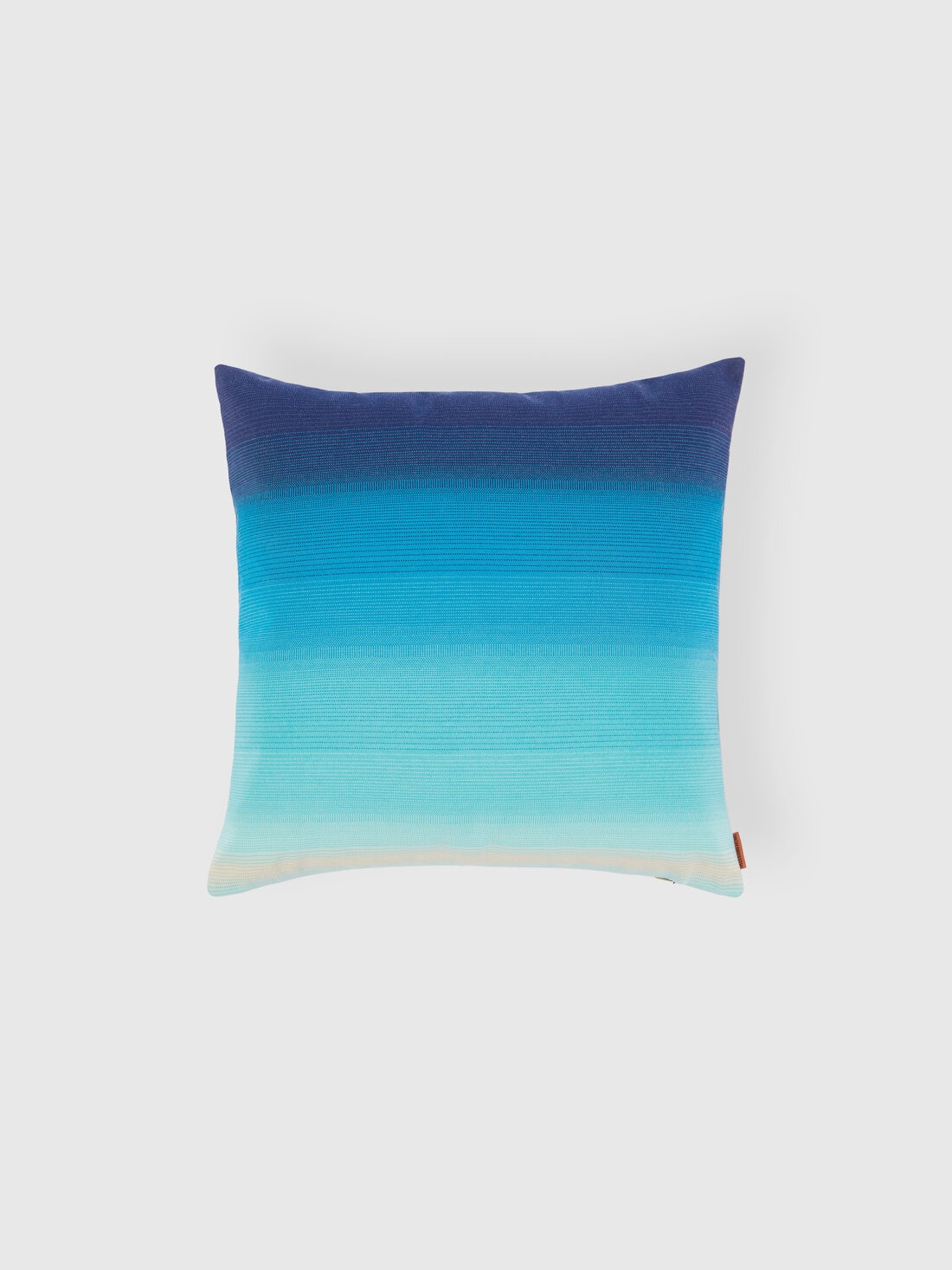 The 40x40 cm Tonga outdoor cushion has colours fading like the sky as the sun passes. The textile accessory offers a dégradé version of the striped pattern that will be appreciated on patios, gardens and terraces, poolside or on a comfortable sofa with a view of the horizon.