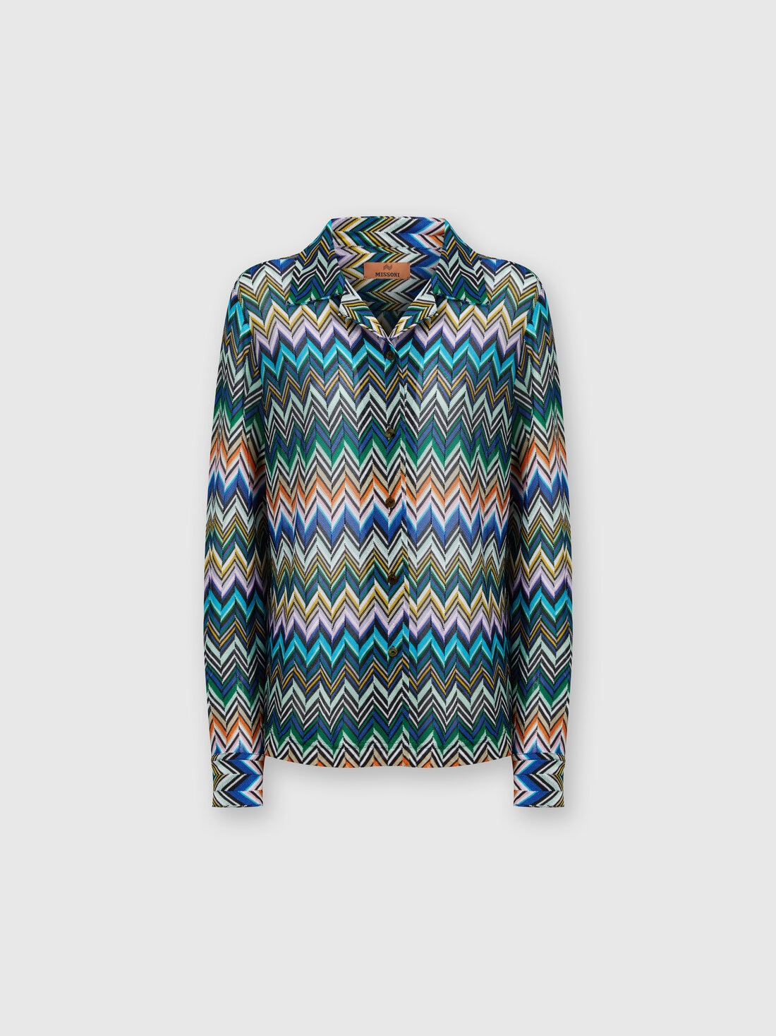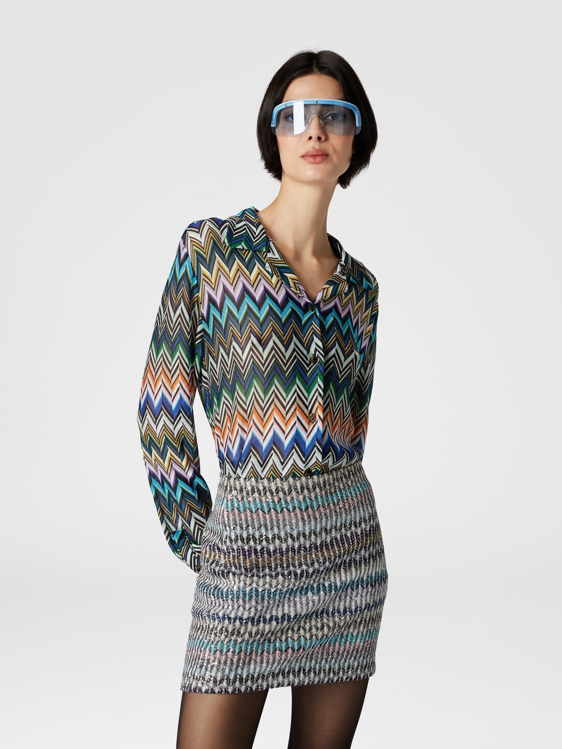The clean design only accentuates the focus on the raschel workmanship with an offset zigzag pattern that characterizes the bowling-cut shirt. A garment for the daily look to which the Missoni touch gives an extra edge.