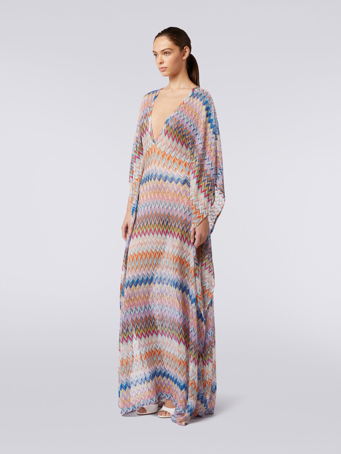 Long V-neck cover-up kaftan with lurex
