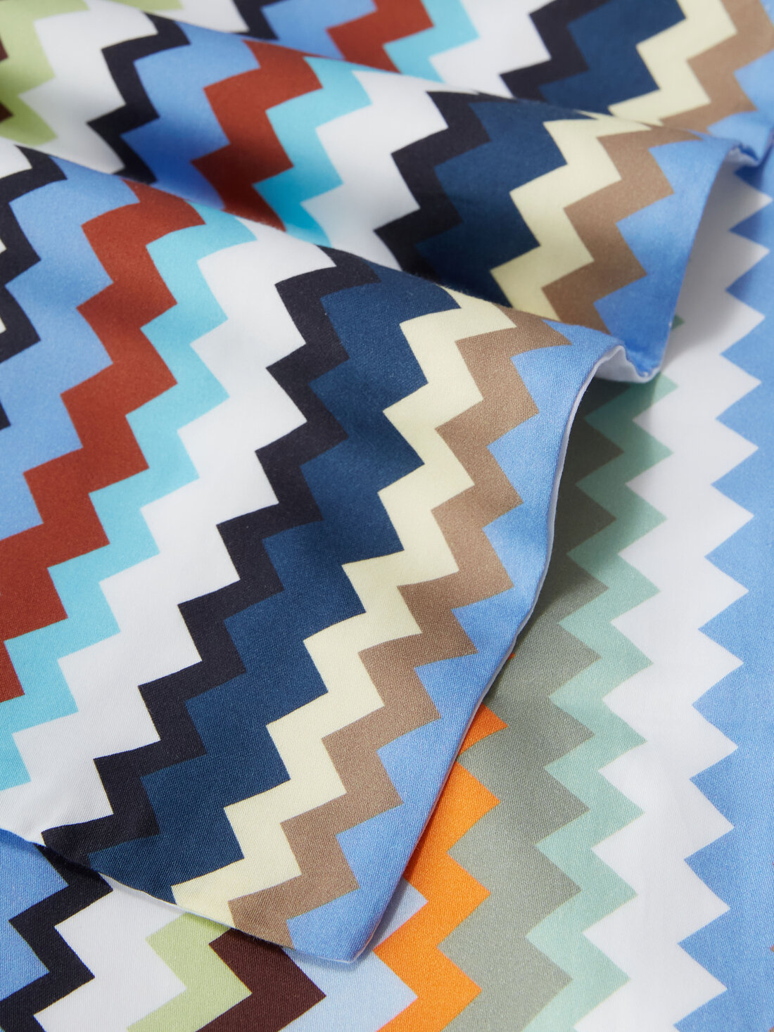 The Valparaiso duvet cover in cotton resorts to the traditional zigzag print, a real must of MissoniHome's creativity. Available in Queen (234x244 cm / 92x96 in) and King (280x244 cm / 108x96 in) sizes, this accessory adds a touch of style and comfort to the bedroom, celebrating the iconic pattern that has always been a hallmark of the Missoni brand.