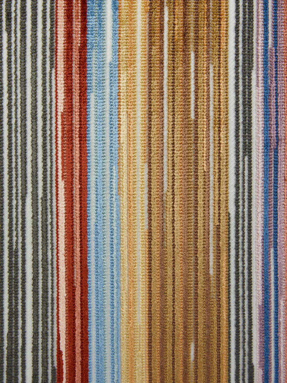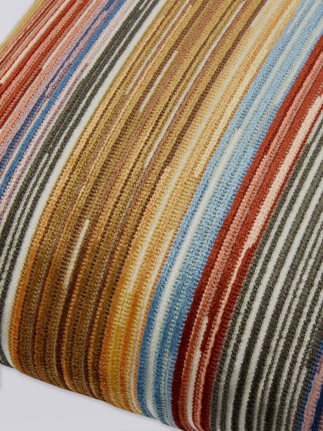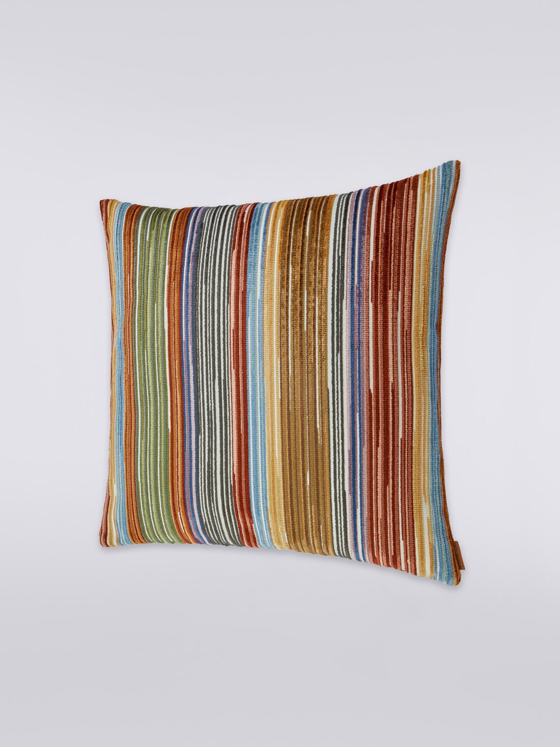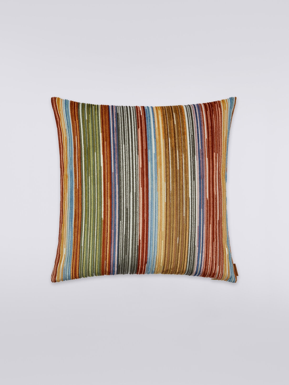 The Bangor 40x40 cm square cushion is characterized by the alternation of irregular tapestry-effect stripes. Thanks to its 3D striped workmanship, this home accessory seems to come alive with colours with a distinctly Sixties flavour.