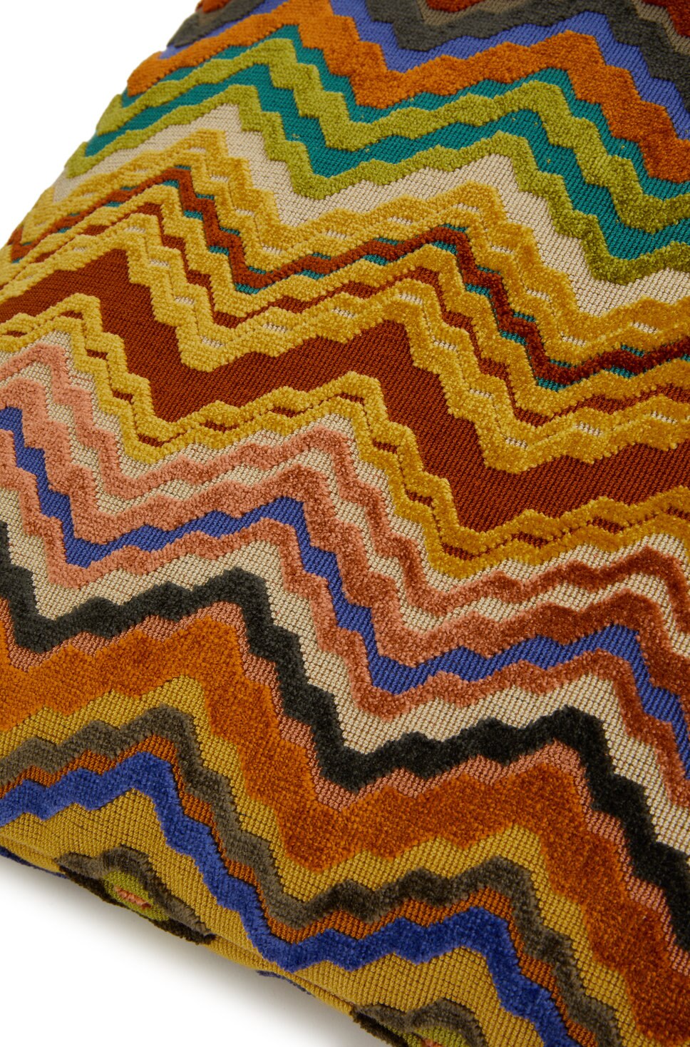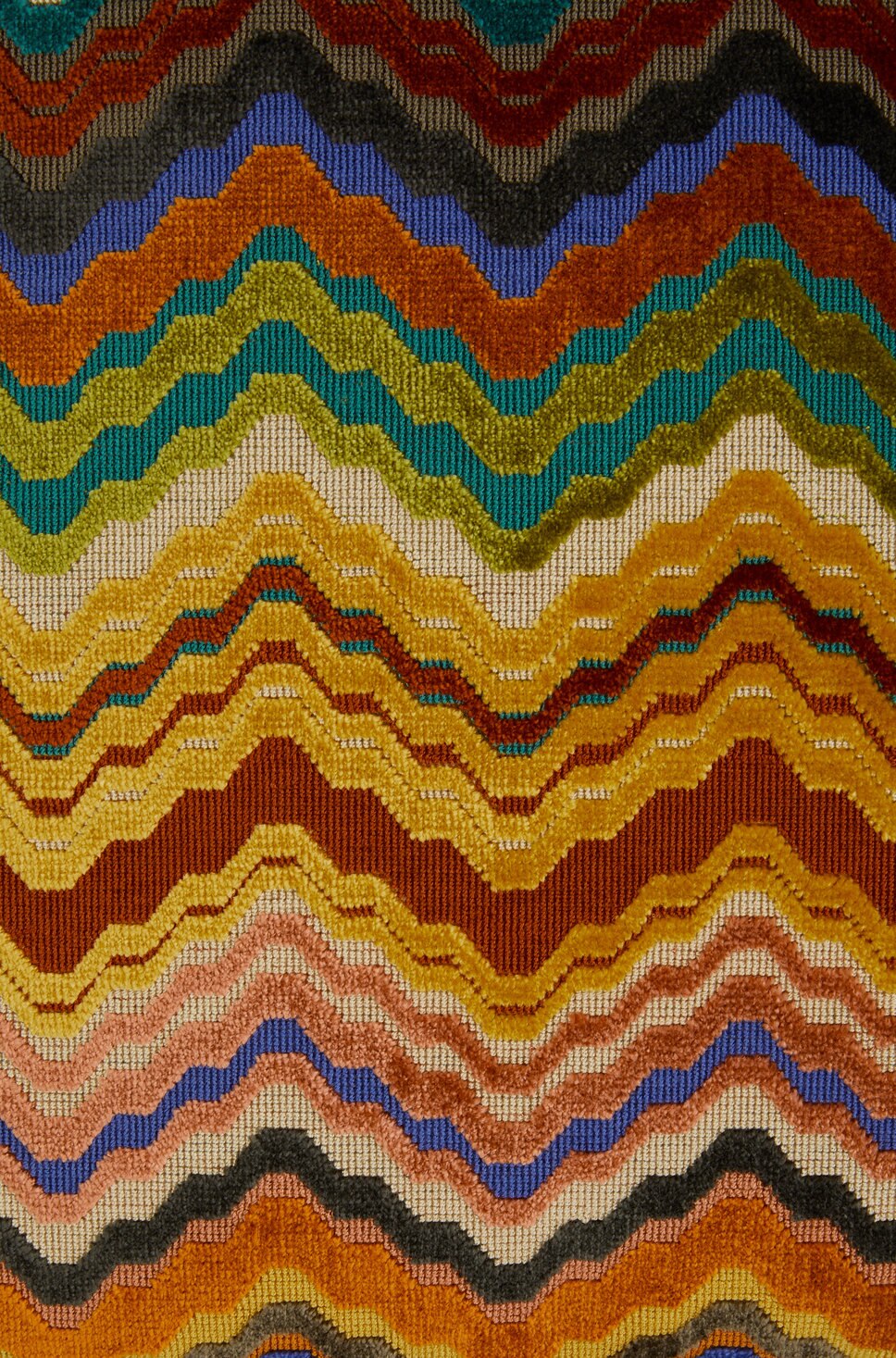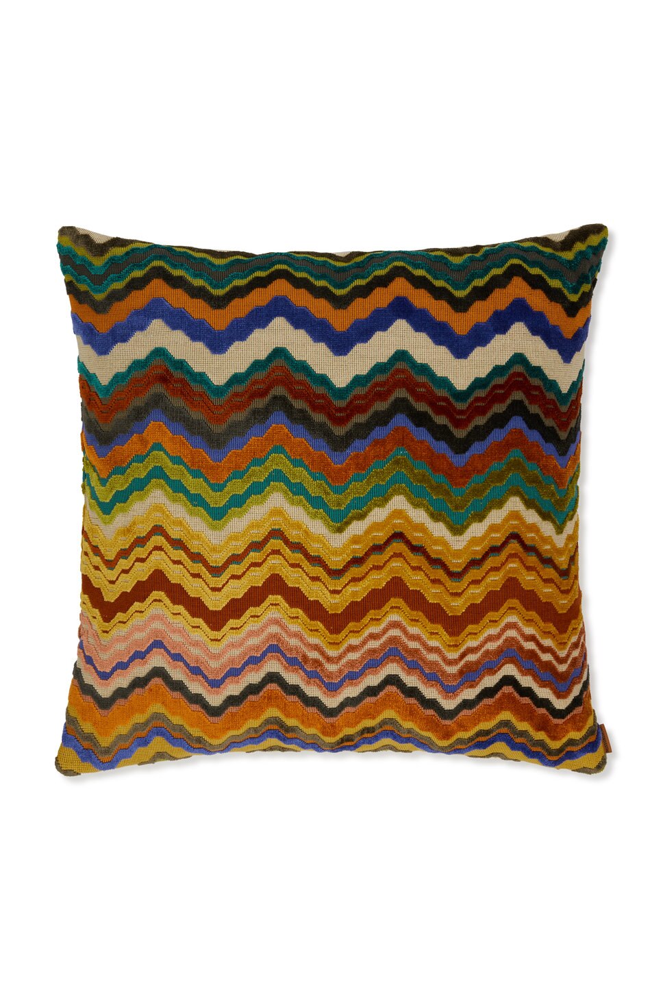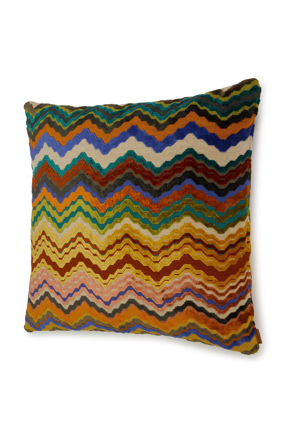 The Bayahibe cushion offers a greeting in every home environment with the brilliance of colours and nuances stolen from the urban settings of the Caribbean coasts. Bayahibe is the cushion in viscose velvet fabric with maxi-chevron. MissoniHome reinterprets the iconic zigzag motif with surprising originality, transforming it this time in materic garlands of enveloping freshness.