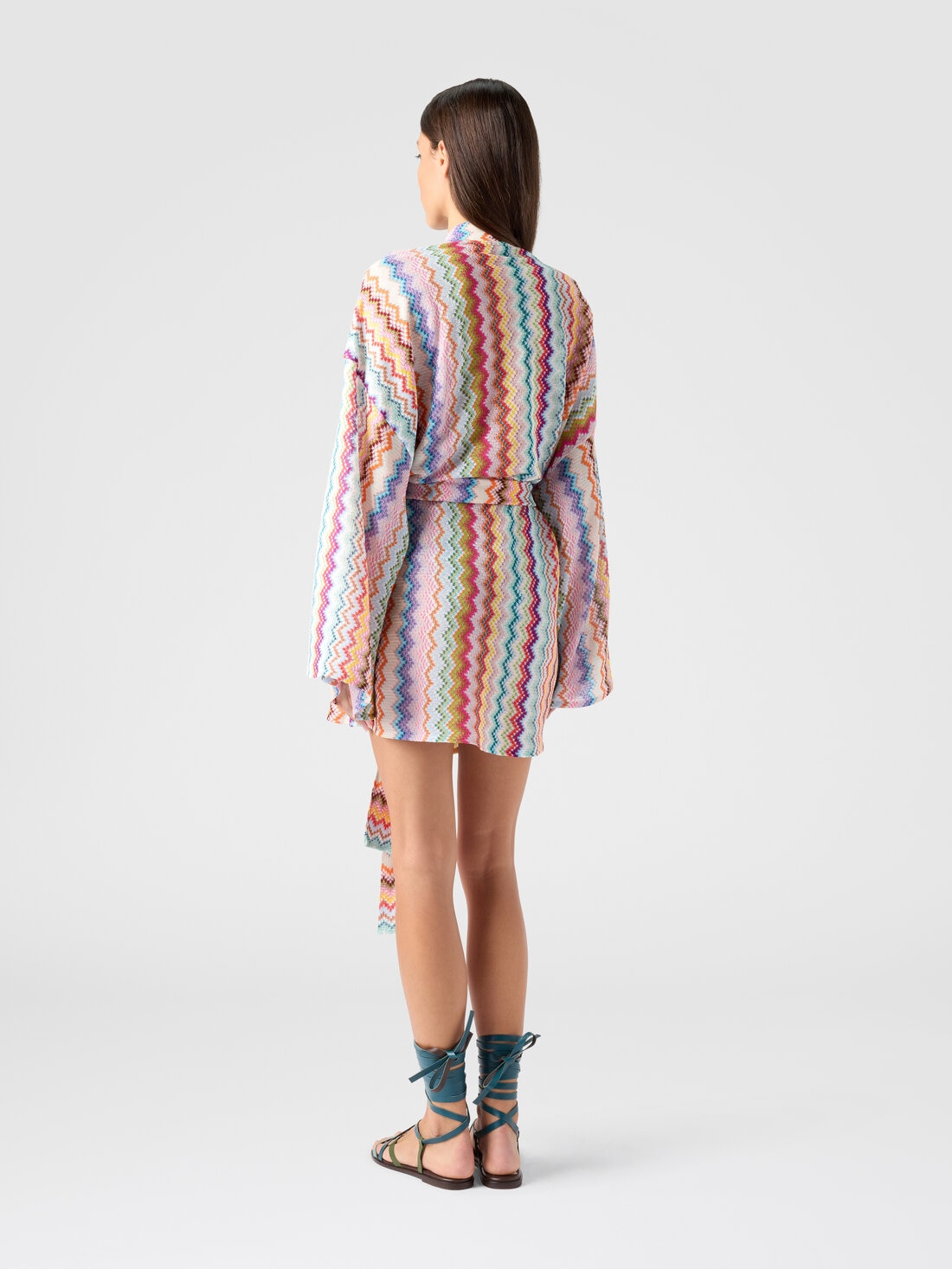 Short kimono cover-up in lamé viscose with pixel-effect zigzag pattern