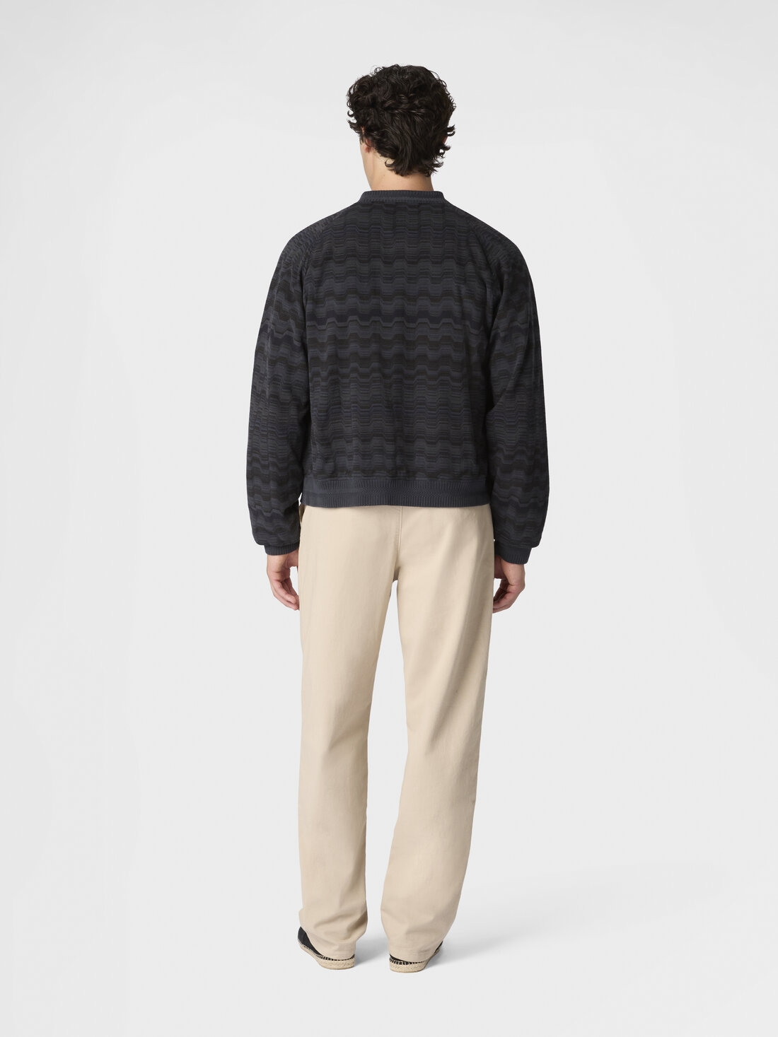 The raschel workmanship enhances the three-dimensionality of the Greek motif that defines this reversible men’s bomber jacket in 100% cotton. A versatile and refined piece that reflects the Maison’s artisanal mastery and unmistakable aesthetic.