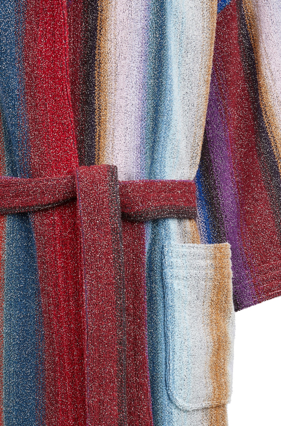 Perfect to wear for refined home relaxation and ideal as a gift for the upcoming festive season, the hooded cotton robe takes on new proportions. The short model, punctuated with bright lurex threads, features front pockets, a belted waist, wide sleeves and a wrap-around design. The elegant branded box completes the design.
