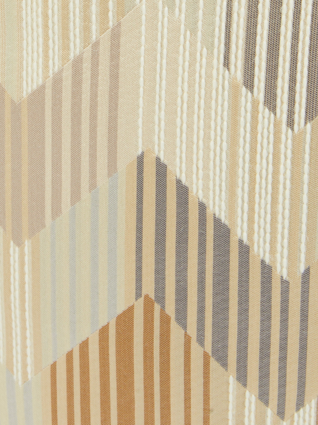 The cylindrical Betulla pouffe measures 40x30 cm and features a garment-dyed jacquard fabric. The design features a charming striped chevron pattern. Equipped with a logo-imprinted leather handle, it is a practical and decorative addition to any space.