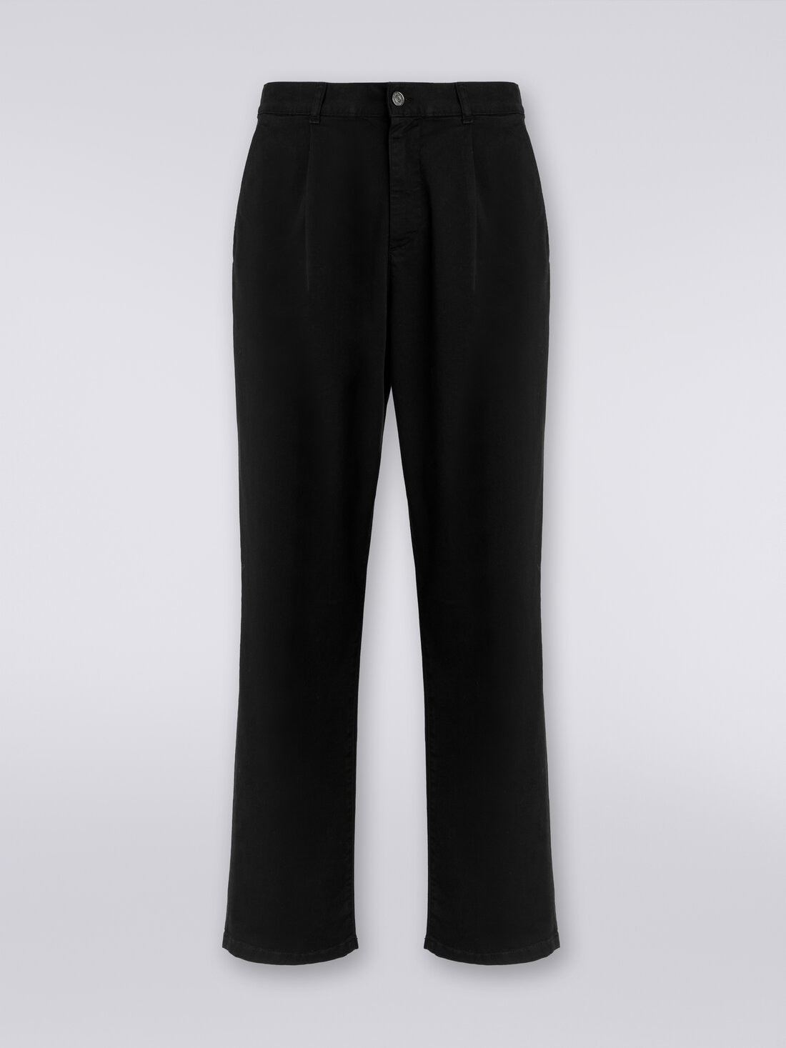 Classic men’s chino trousers in cotton gain a contemporary twist thanks to Missoni’s touch, transforming them into the perfect everyday look complement. Featuring a relaxed fit and a small contrasting embroidered monogram, they present pleats at the waist and practical side pockets.