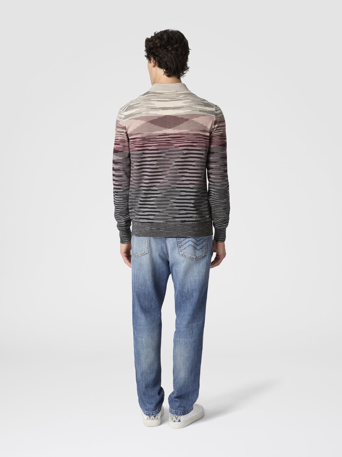 Long sleeve polo in pure wool with flame pattern