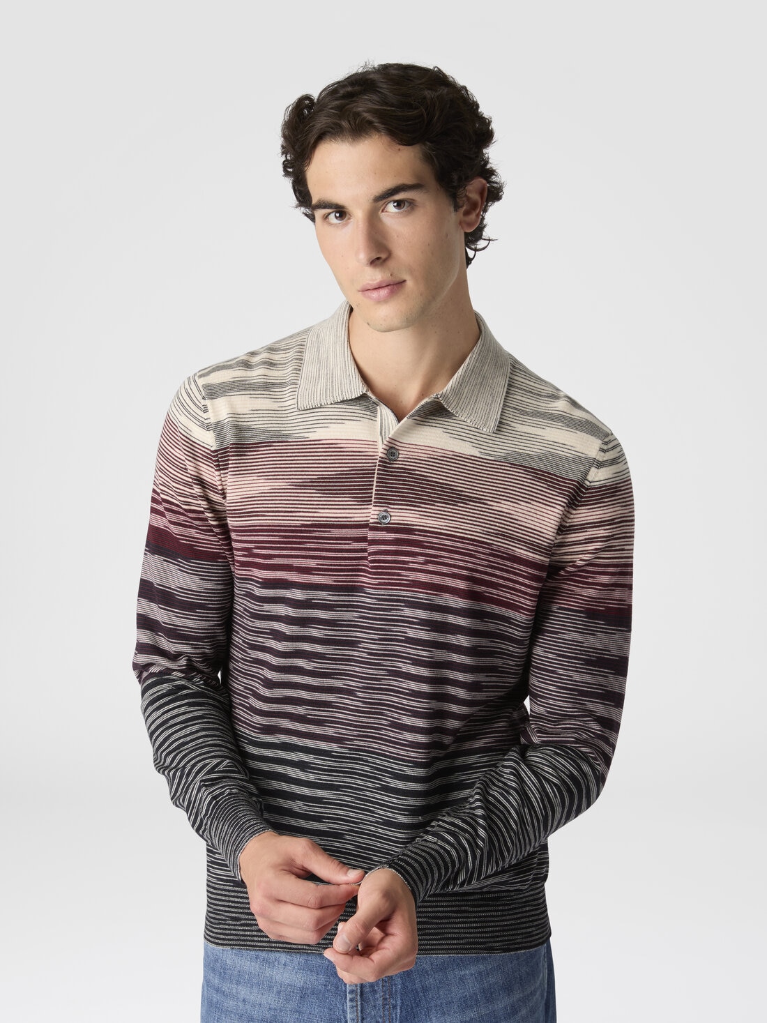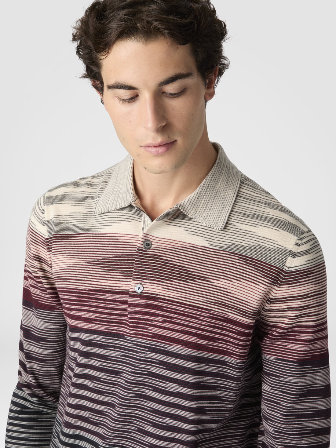 The classic men’s polo is renewed with a striped motif on slubbed wool, creating a garment that merges tradition and contemporary style. The richly textured workmanship enhances the simplicity of the design for a look that’s both sophisticated and relaxed.