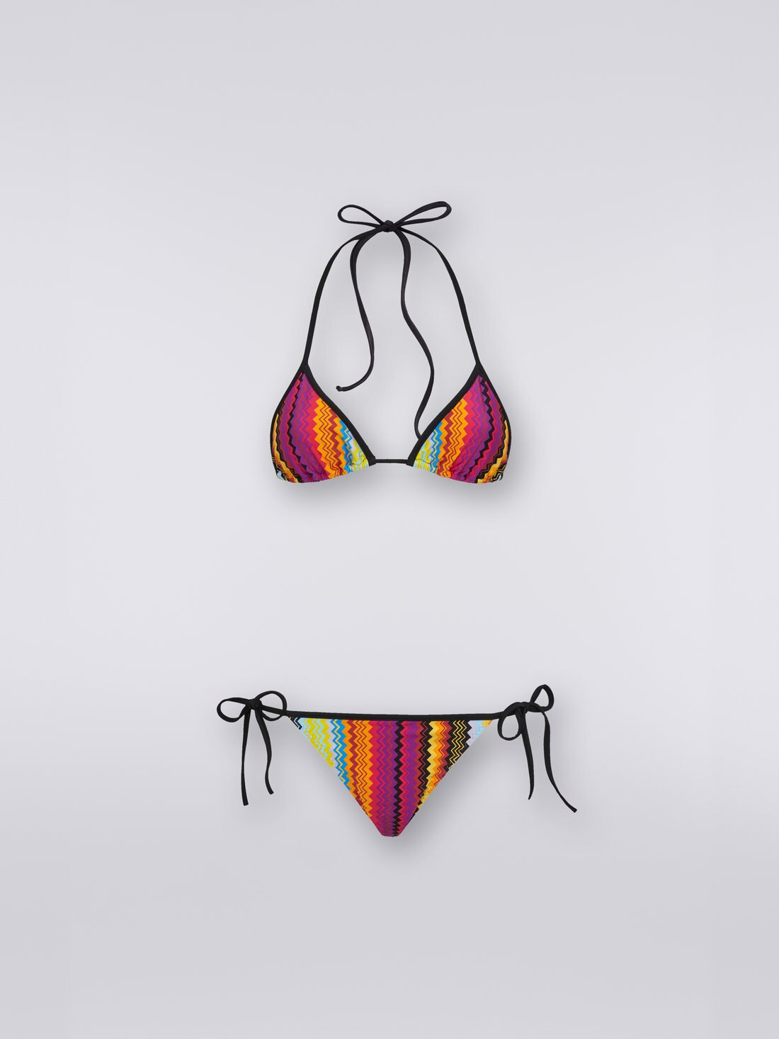 If you had to choose just one print that is iconic and representative of Missoni’s DNA, you would definitely go for the chevron. A multicoloured version of this pattern characterises the women’s stretch nylon bikini.