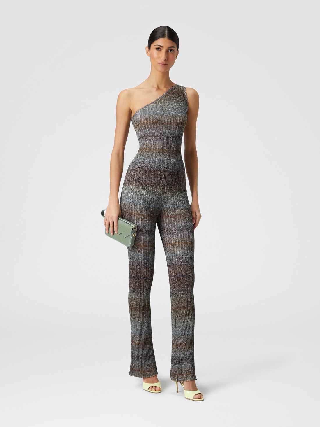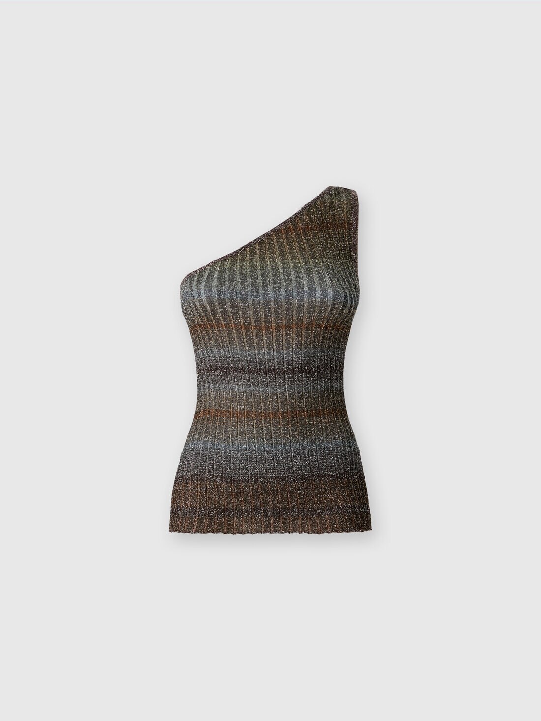 The Missoni women's one-shoulder top in lamé viscose is an elegant style statement. With sophisticated vanisé ribbing and lurex threads, the top adds a touch of sparkle and sophistication to any look.