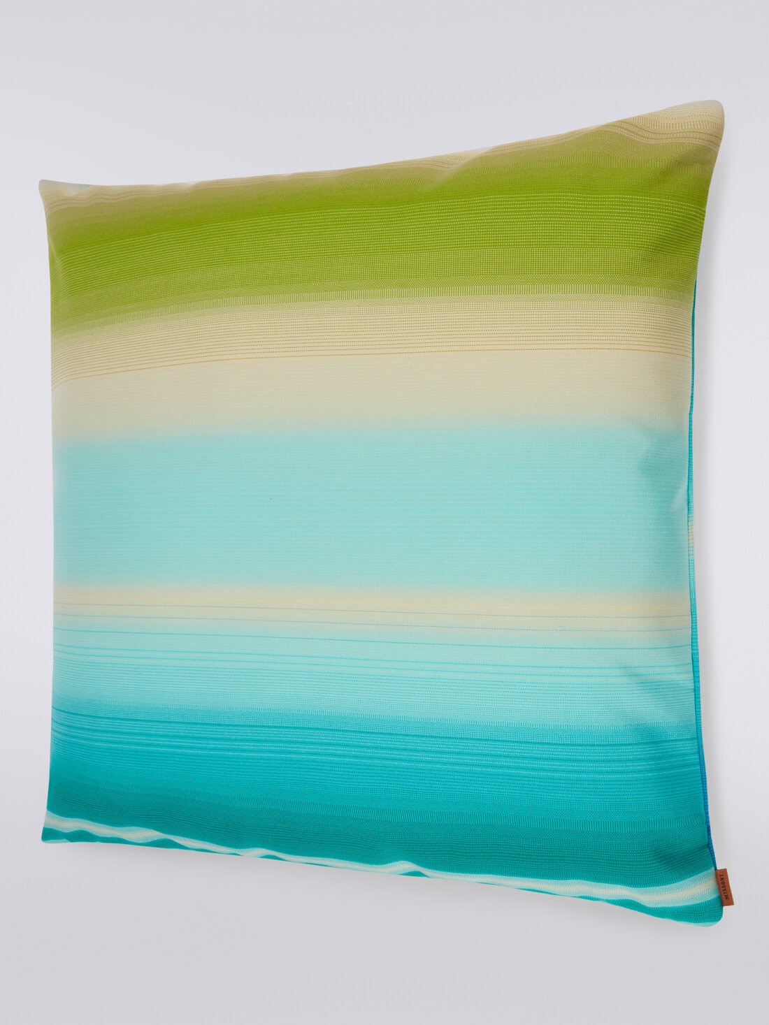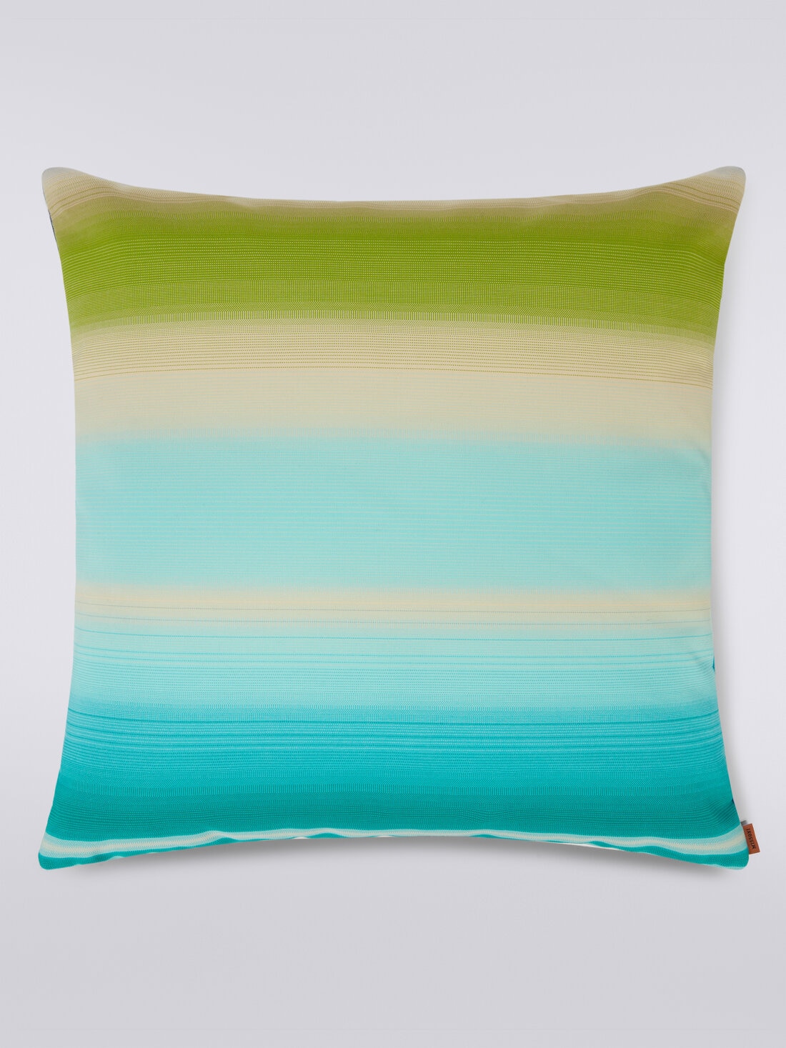 The Tonga outdoor cushion by MissoniHome features hypnotic dégradé colours. Refined and at times almost imperceptible, the colour variations characterise the surface of the cushion, which is perfect for furnishing outdoor living spaces in pure Missoni style.