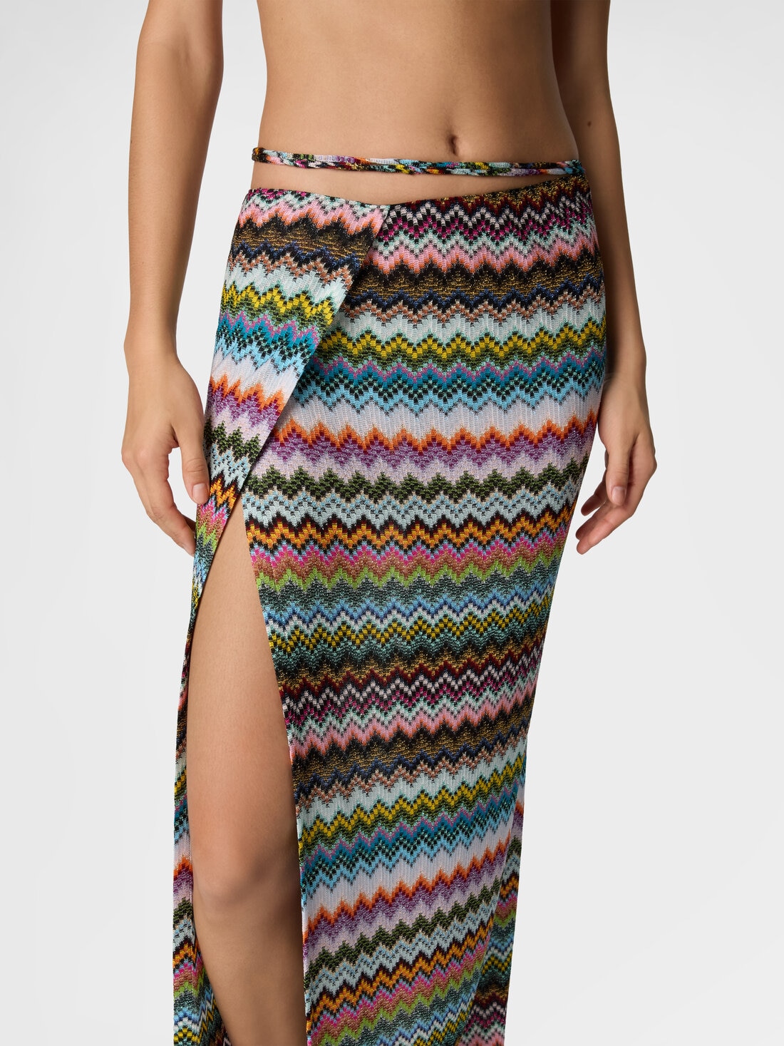 Long pareo skirt in lamé viscose with pixel-effect zigzag pattern