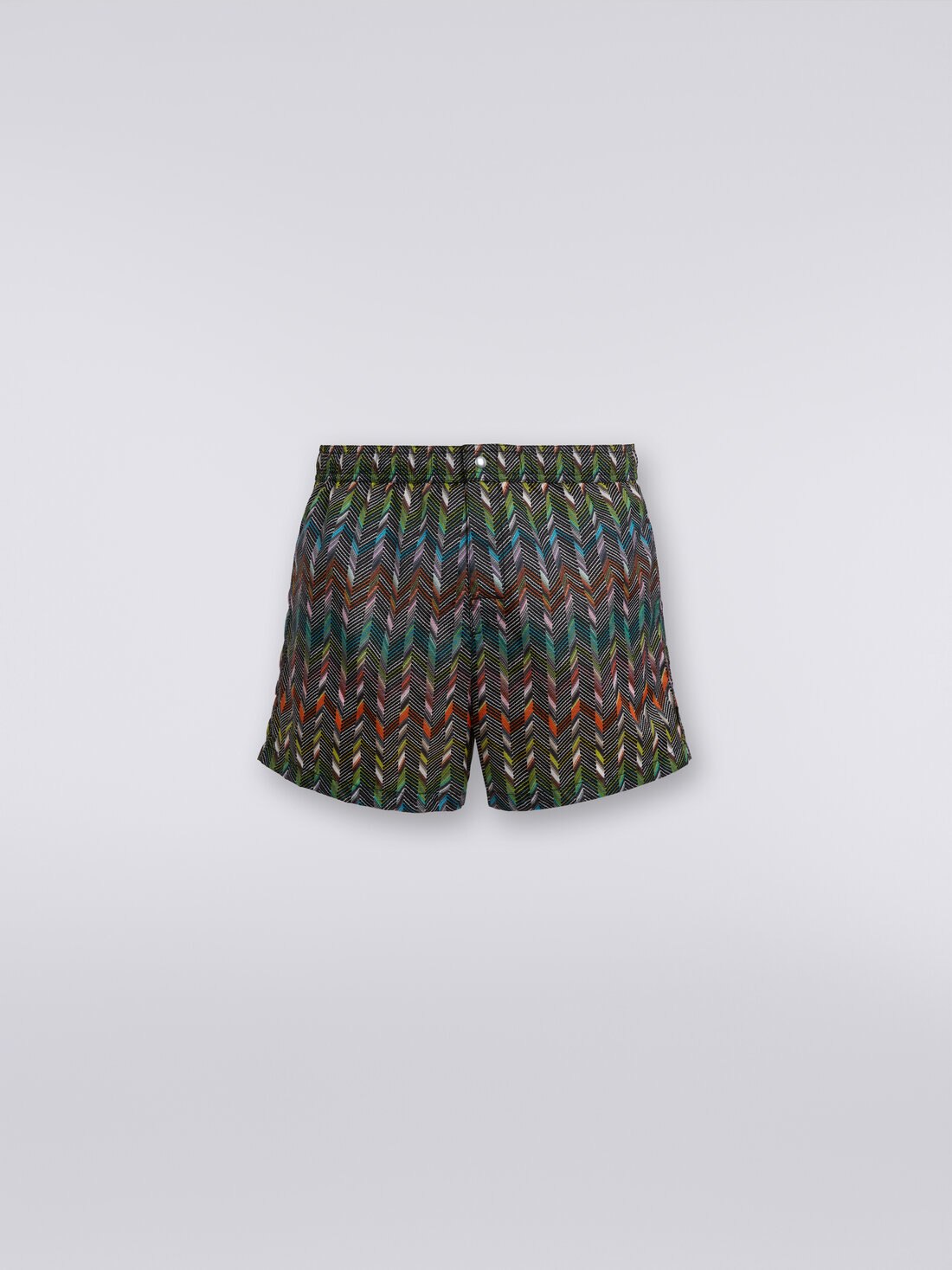Made of zigzag print nylon with a Caperdoni pattern, the men’s swim shorts are customised with a contrasting embroidered logo, which adds a touch of refined exclusivity to these shorts that are perfect from the beach to the spa.