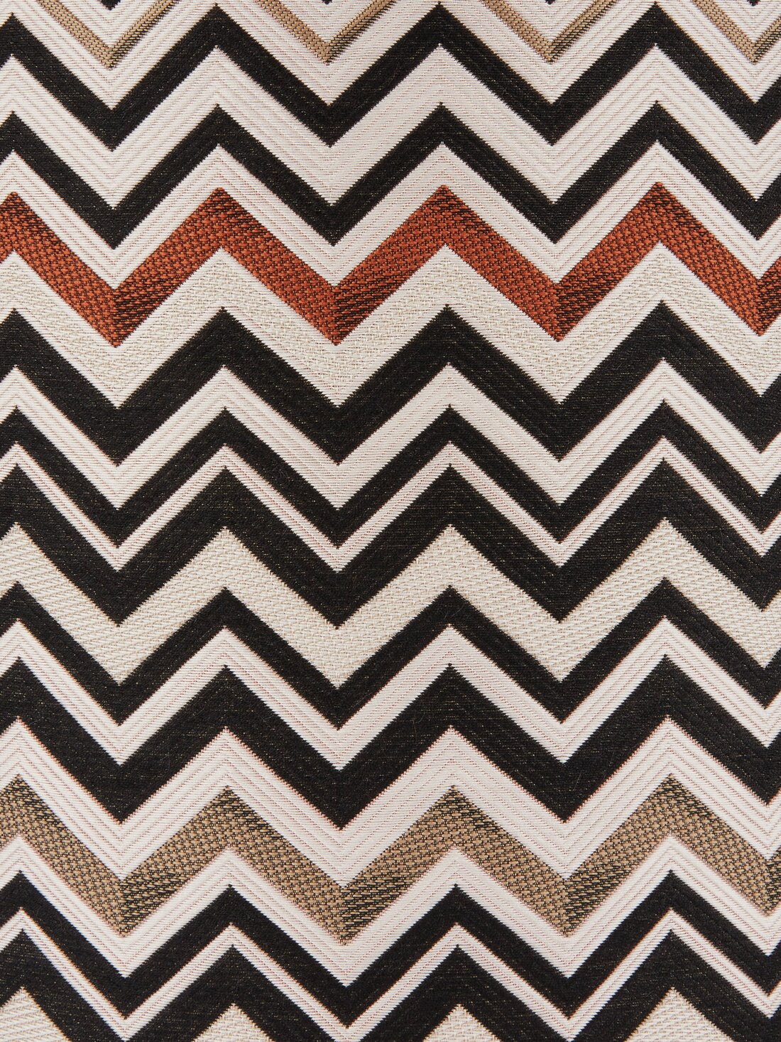 Missoni's zigzag in its purest version characterises the cylindrical 40x30 cm Belfast cylindrical pouffe. Made practical and manageable by the refined leather handle with imprinted logo, this furnishing accessory features leather piping.