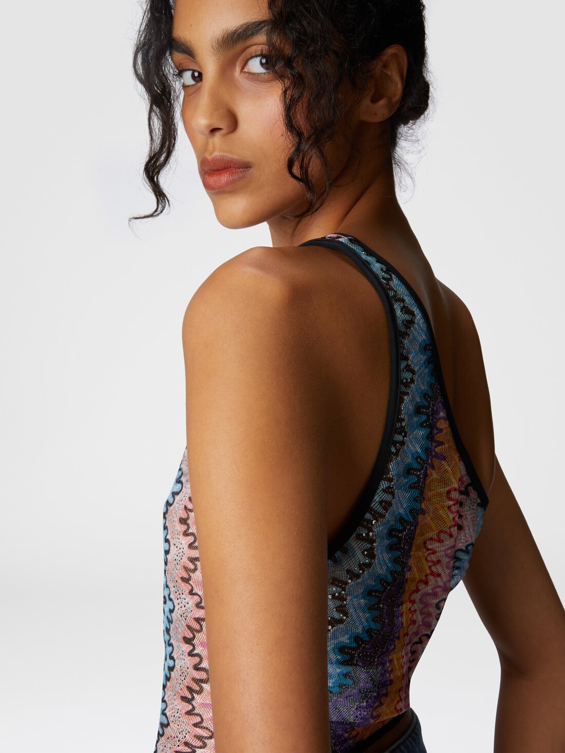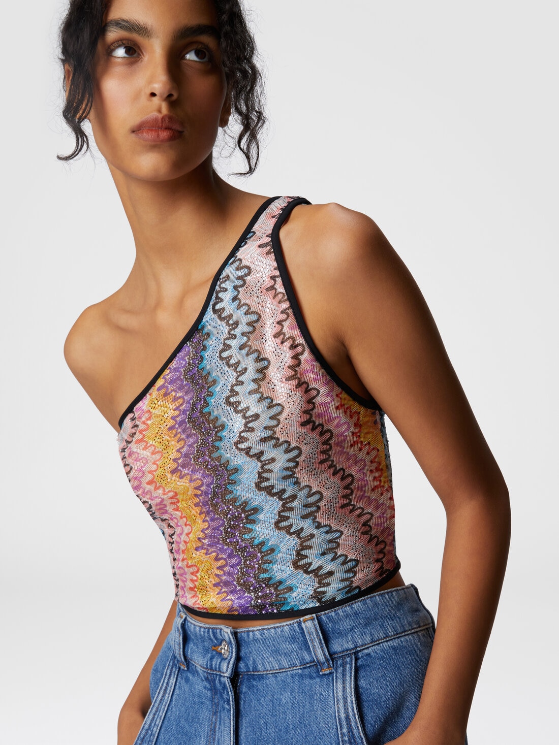 A figure-hugging piece with a tie strap and printed lacework. The one-shoulder design enhances the elegance of the look, making it ideal for contemporary and sophisticated outfits.