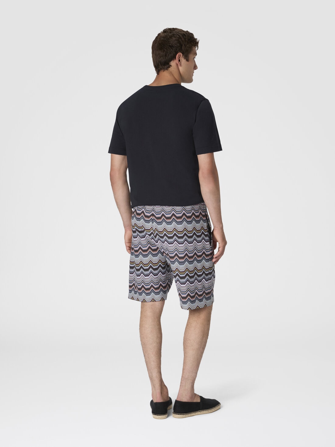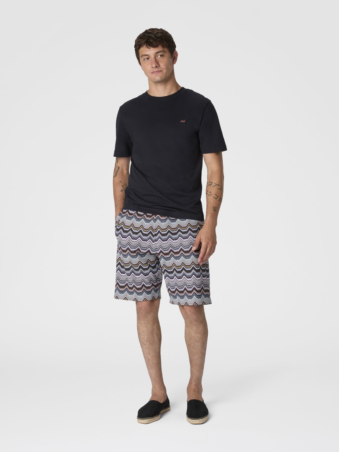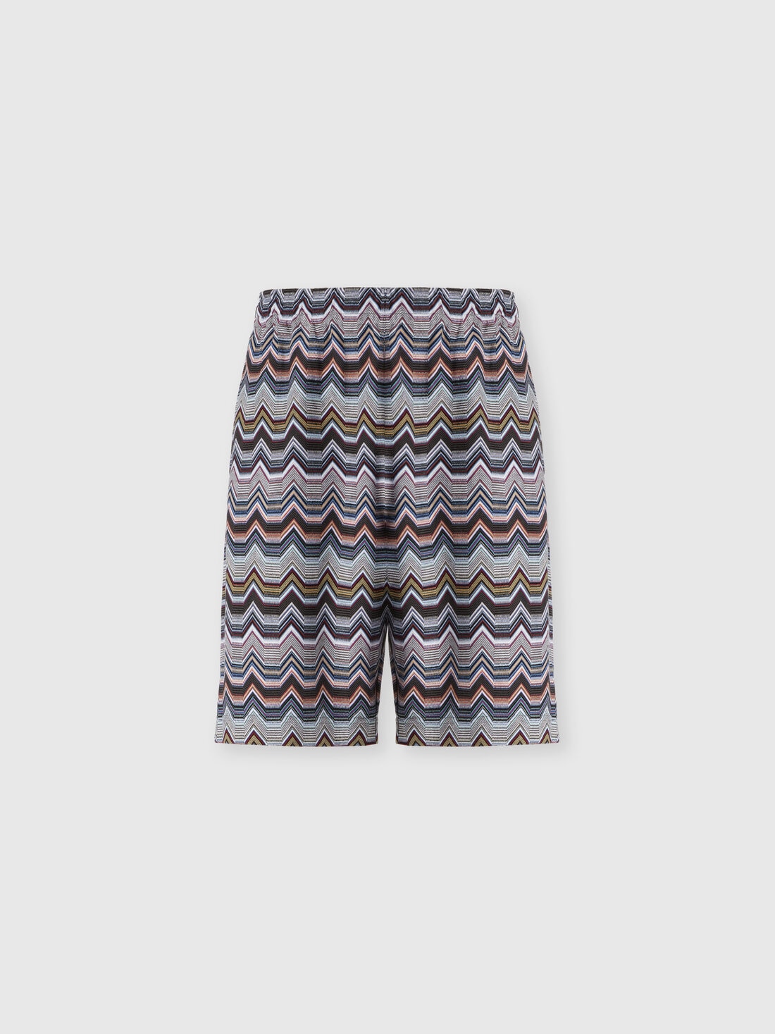 In these men's shorts, the raschel weave comes to life with the geometric zigzag pattern iconic to the Missoni style. The soft cotton garment combines comfort and personality in a model with a graphic and contemporary allure. The straight line with side pockets and relaxed fit ensure freedom of movement.