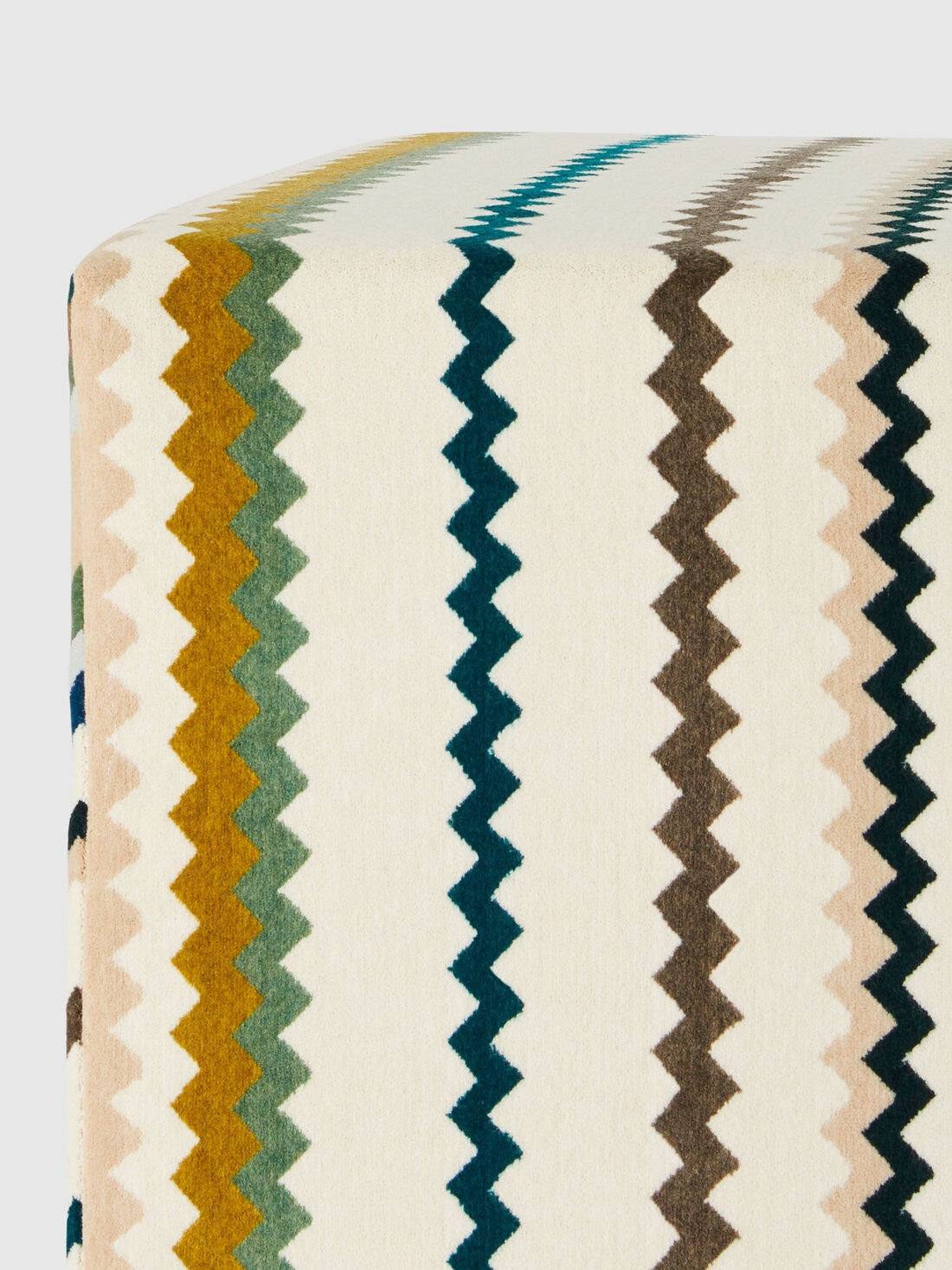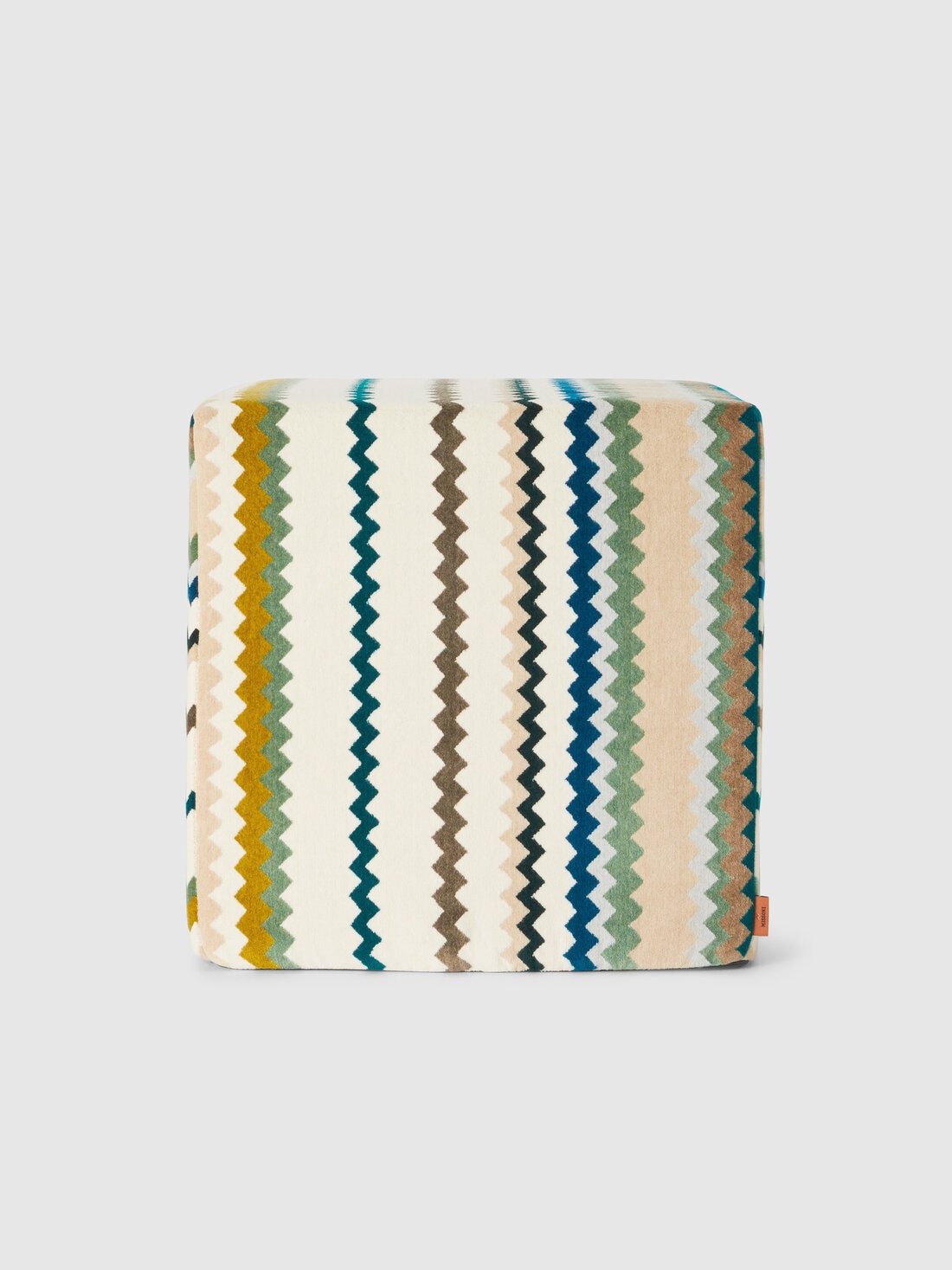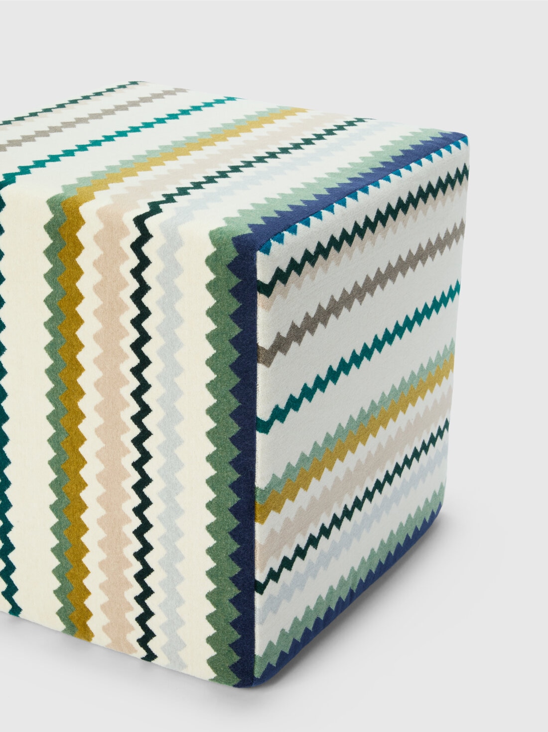 Inspired by desert dunes, the 40x40x40 cm outdoor pouffe features a zigzag pattern that seems to evoke the movement of the sand. Made to withstand different weather conditions, it is the perfect combination of functionality and design. Complete with the elegant Missoni logo label, it is an ideal accessory to embellish and personalise outdoor spaces with a touch of refined elegance.