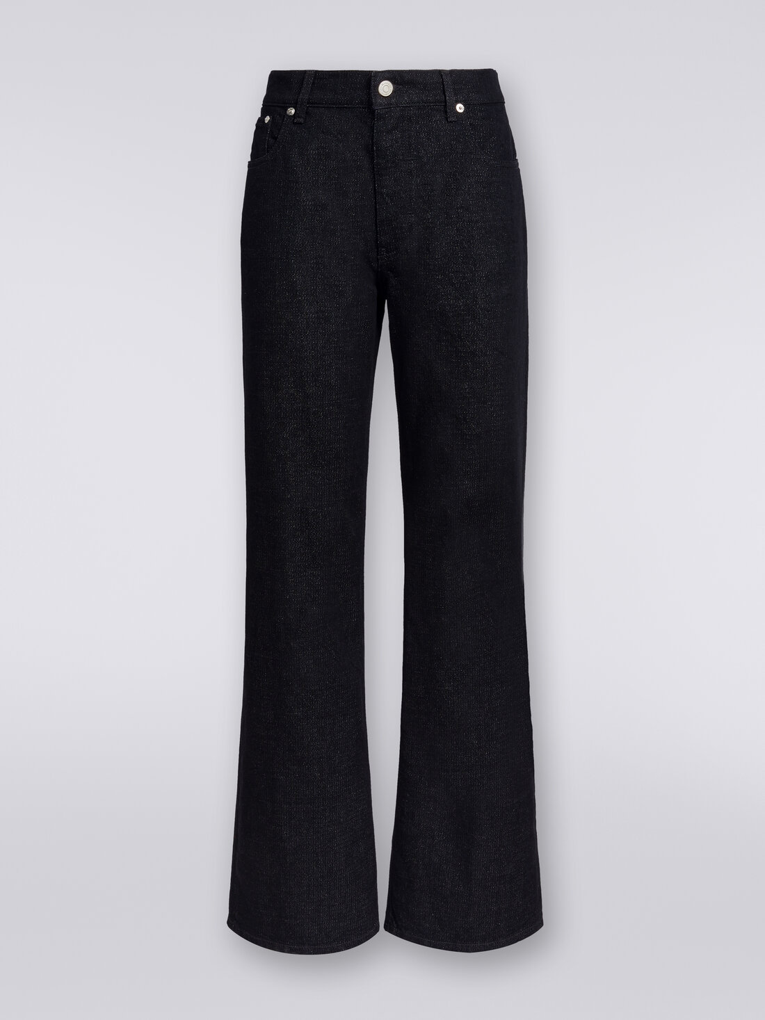 Lit up by lamé thread, the women’s five-pocket trousers find the expression of their versatility in textured denim. The piece, with its relaxed fit, is a perfect accompaniment to the wearer’s look in all seasons and on a host of occasions.
