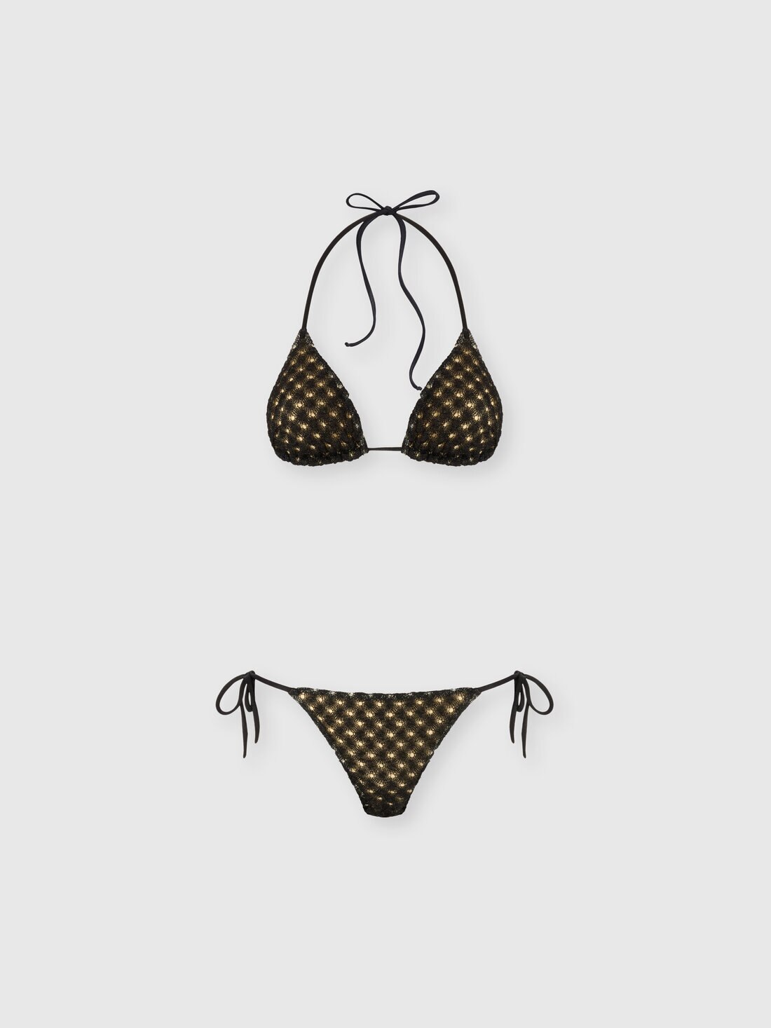 Triangle bikini in lamé viscose with raschel workmanship