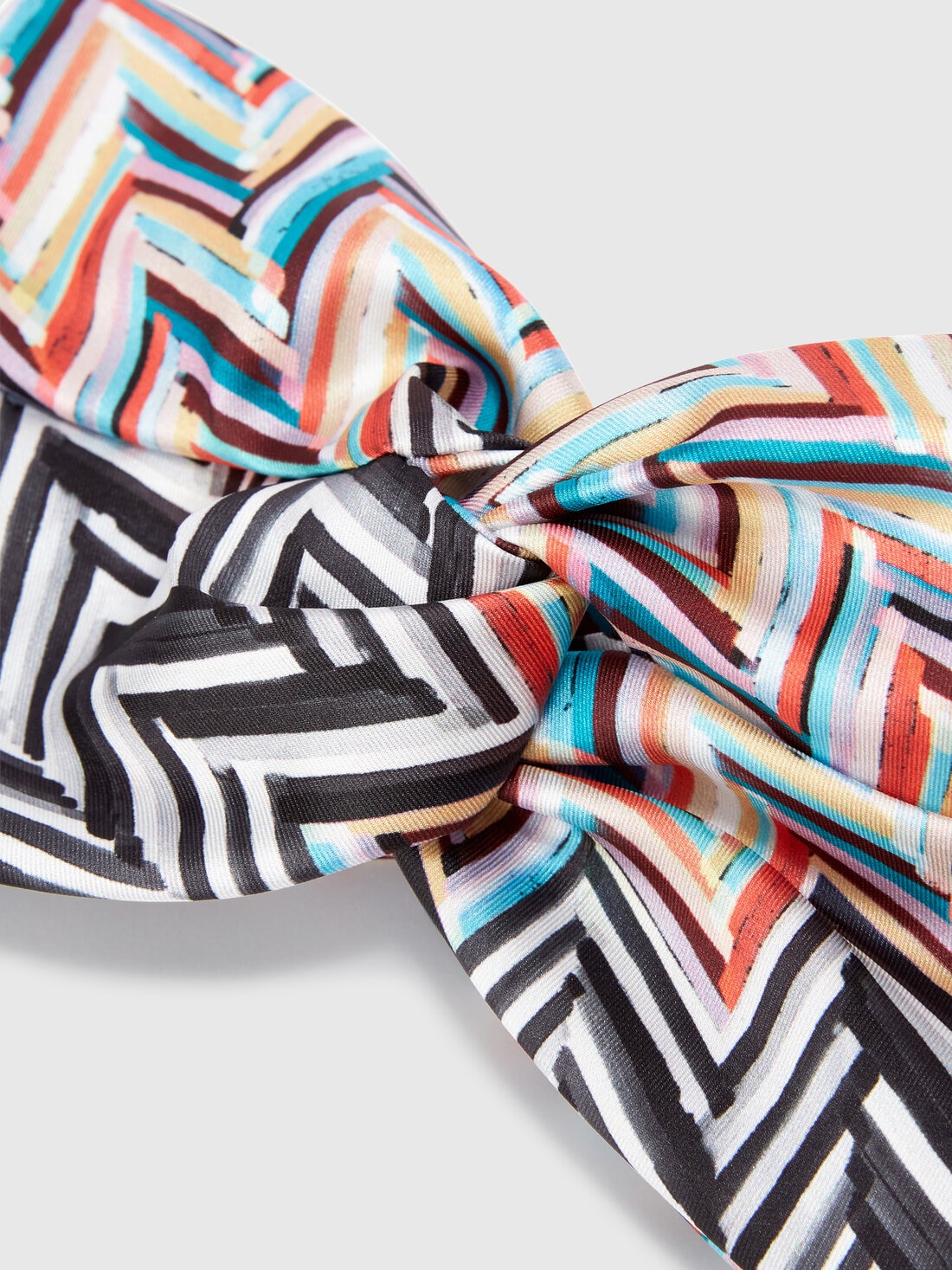 The fabric headband with a zigzag pattern is a fashionable and versatile accessory, ideal for stylishly gathering your hair on multiple occasions. The chevron adds dynamism, while the central knot makes the design distinctive and fascinating.
