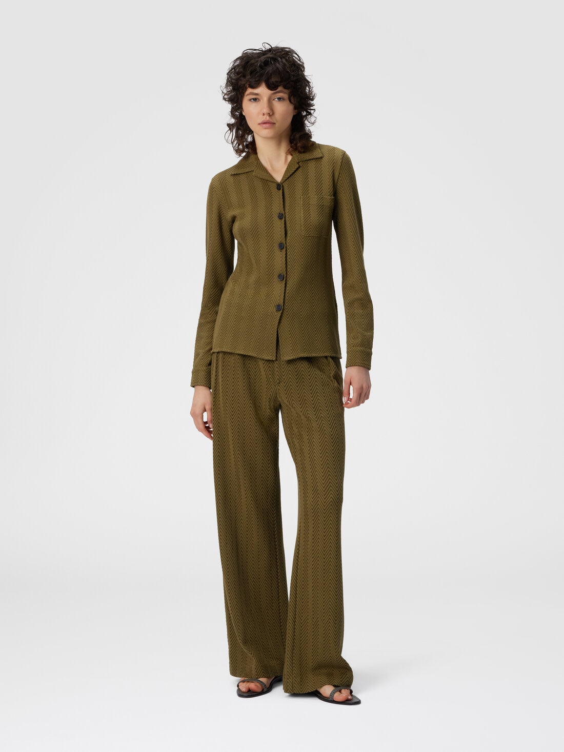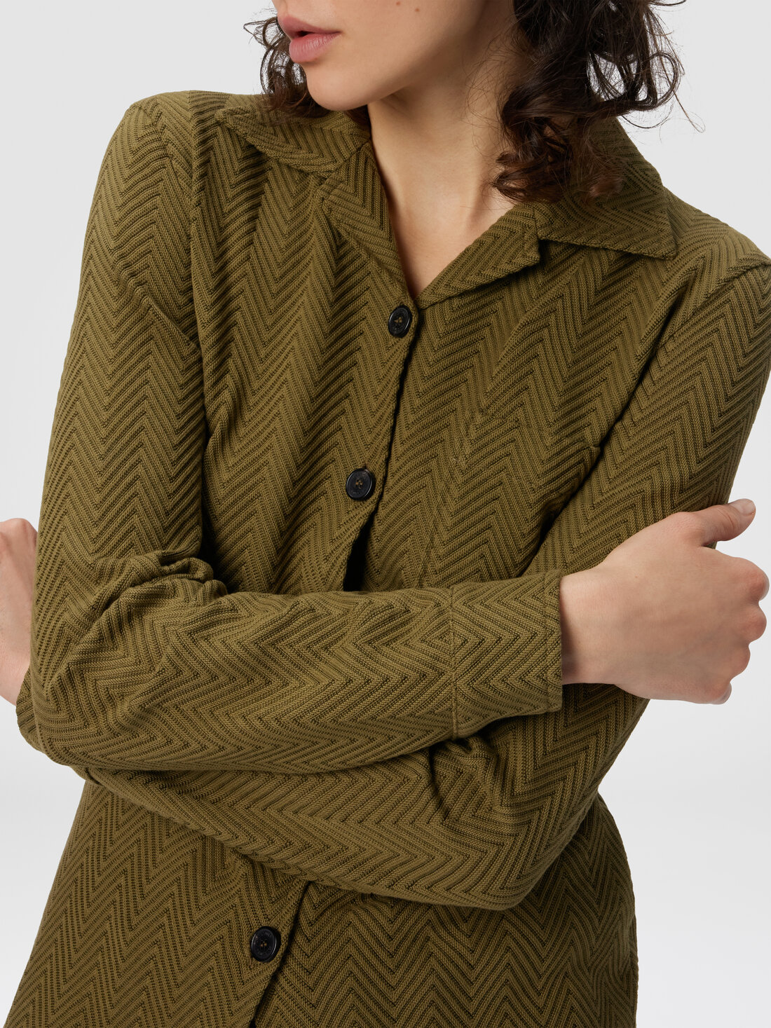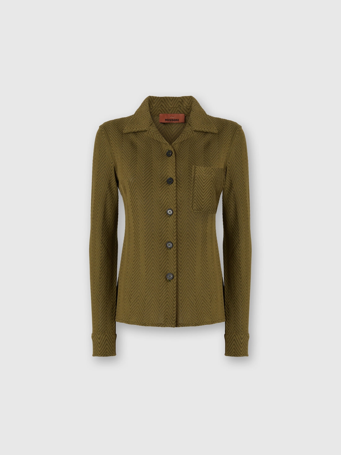 A slim-fit, long-sleeve women’s shirt that embodies Missoni’s iconic style, entirely crafted in the unmistakable zigzag motif through refined raschel workmanship. Made from a cotton blend, it combines tailoring precision and graphic identity in a piece with bold and contemporary character.