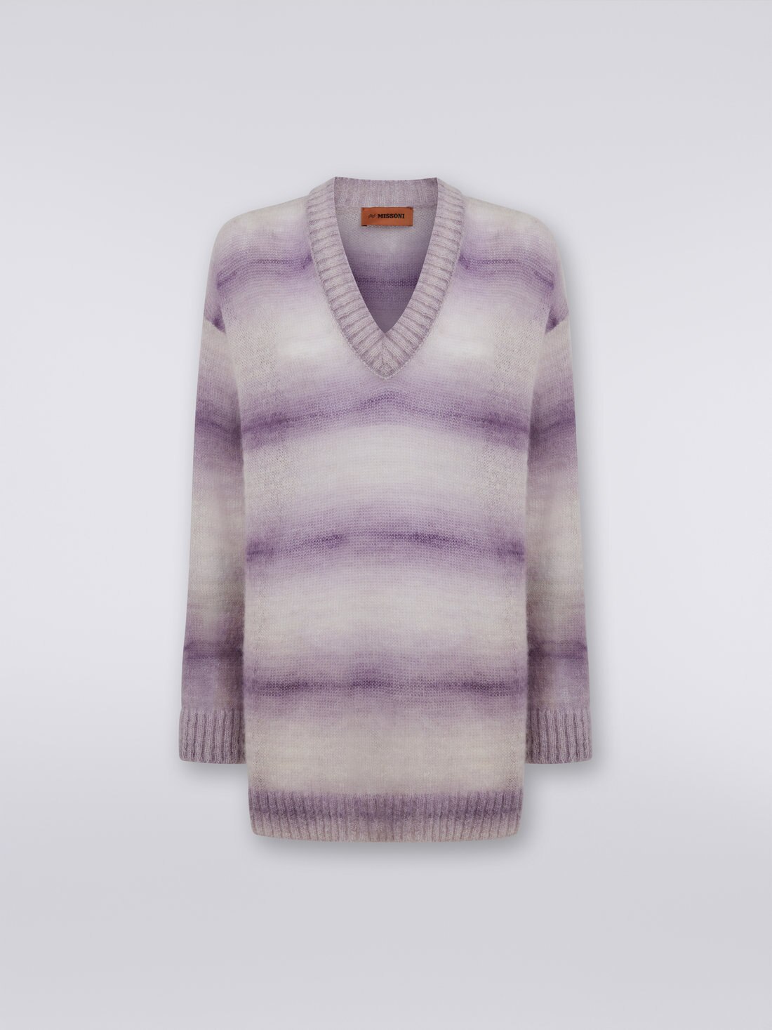 The Missoni women’s jumper is made of a fine two-tone mohair blend. The design of the piece is characterised by a V neckline, oversized fit and ribbed trim.