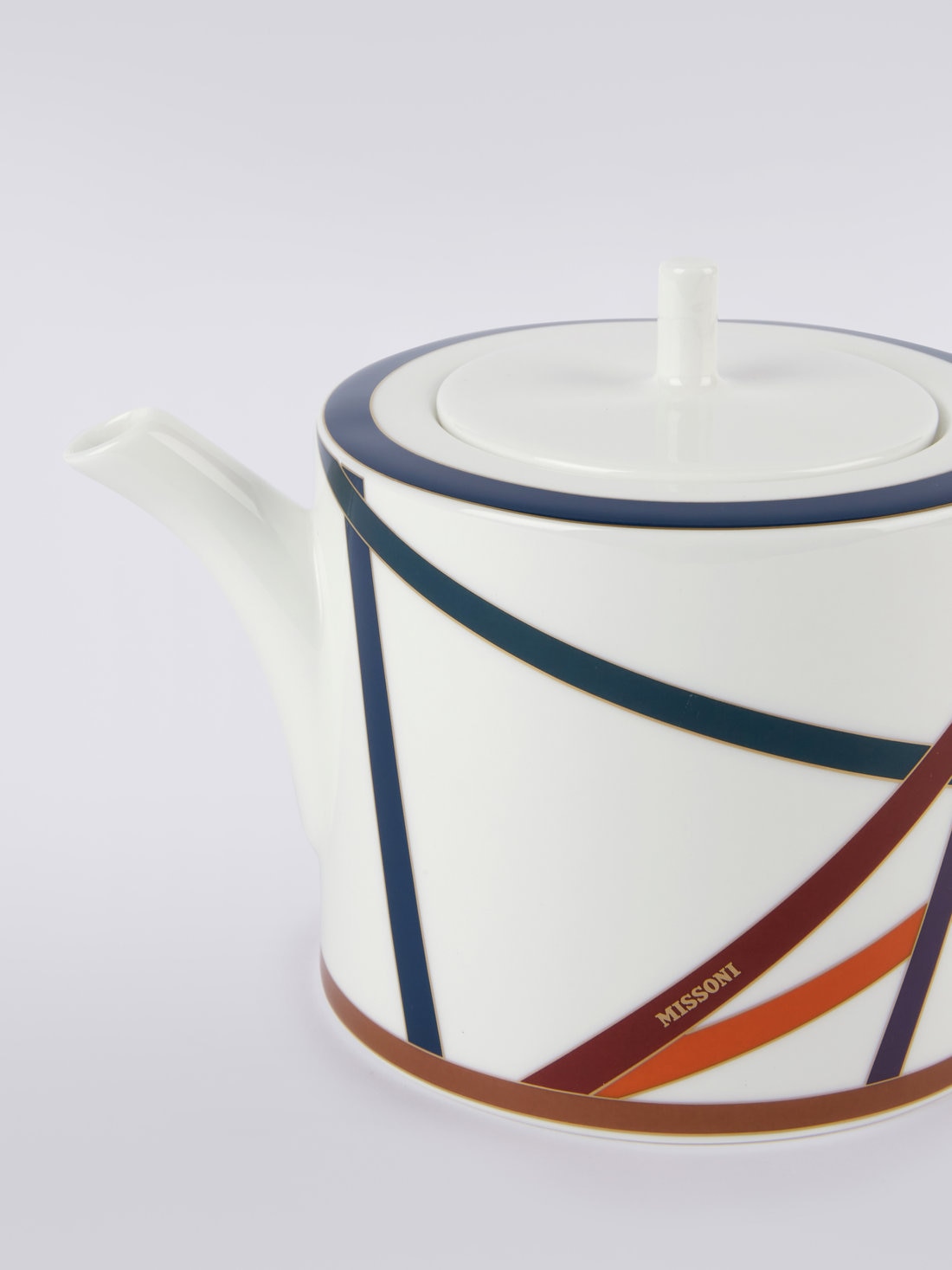 Crafted from the finest porcelain, this teapot is the ideal complement to your tea set, inviting you to indulge in a daily moment of relaxation, enveloped in the sophistication of MissoniHome. Enriched by the iconic Nastri pattern and personalised with the logo print, it is decorated with the gold trim that defines this original decoration.