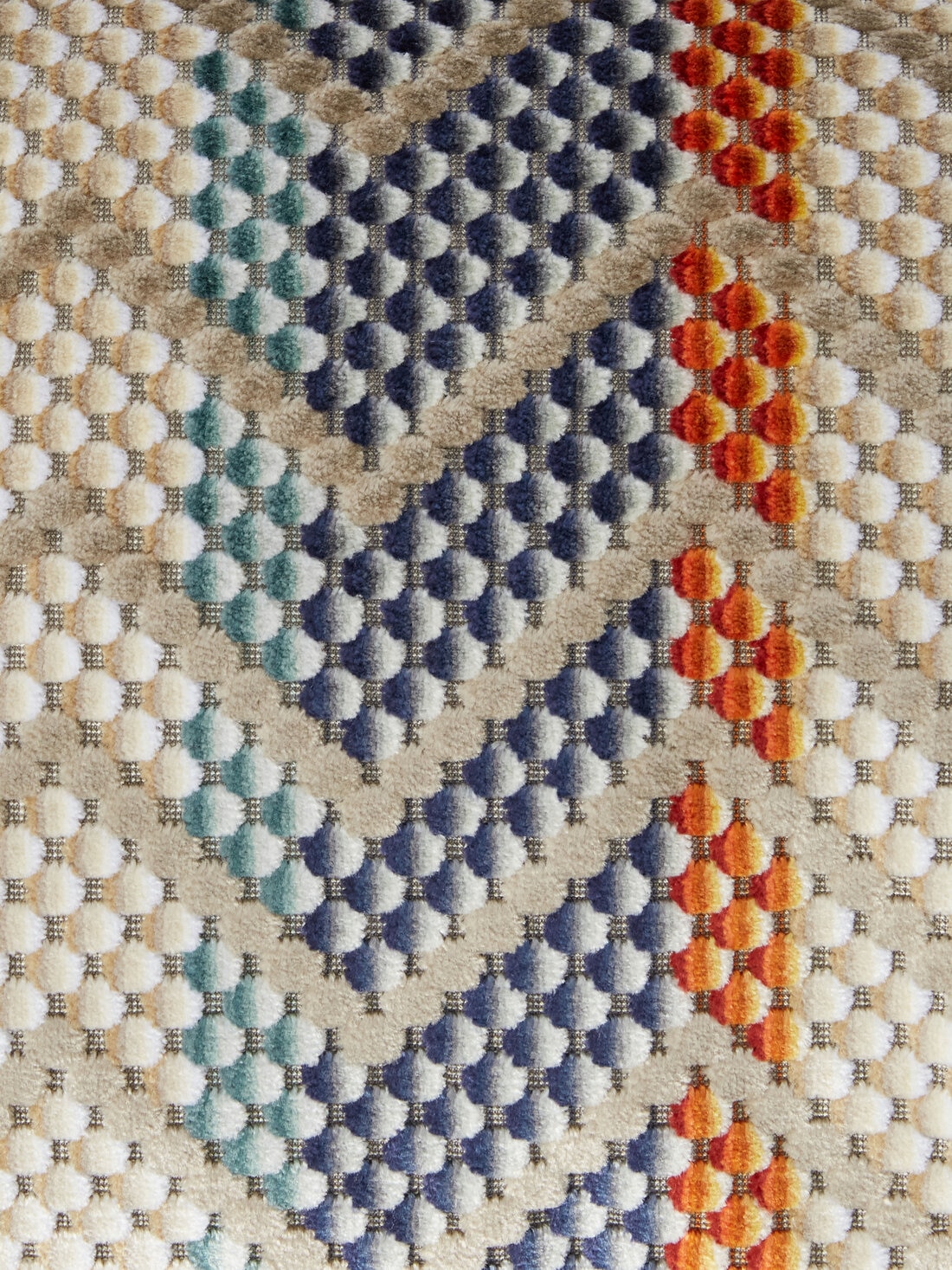 Squame is the MissoniHome 30x60 cm cushion featuring a zigzag pattern in fluid colours and shades reminiscent of the harmony of nature. Made of viscose blend fabric, its special processing gives a unique softness to the touch. The elegant Missoni logo label completes the ensemble, making it a distinctive accessory to enrich any room with sophistication and style.
