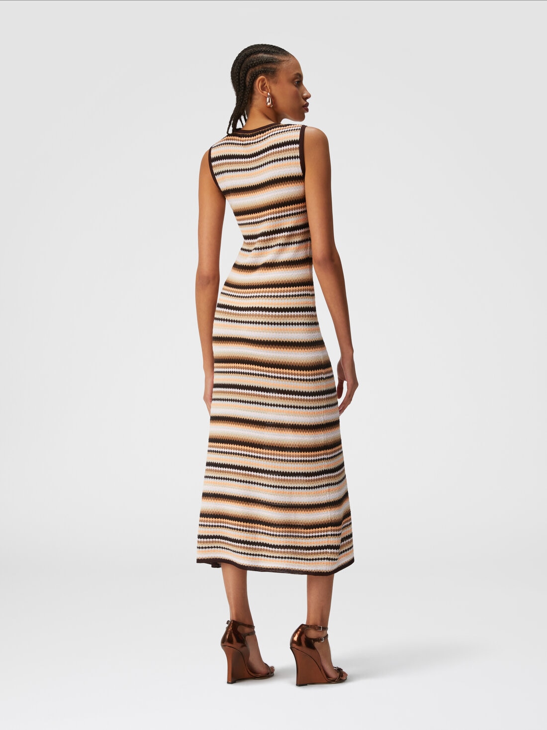 Sleeveless midi dress in striped wool and viscose