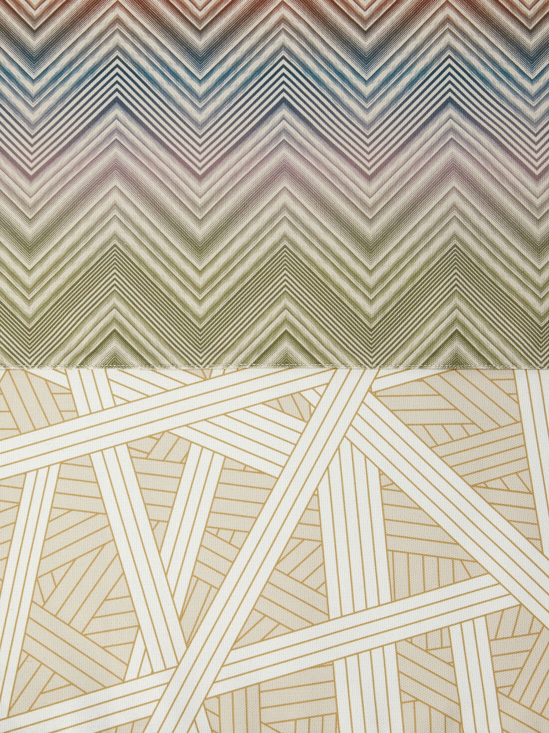 Packaged with care and style, the MissoniHome table set comprises two pairs consisting of a placemat and napkin, both made of soft cotton. The placemats, measuring 52x38 cm, have one side decorated with the chevron pattern, while the opposite side is embellished with the ribbon pattern. The 35x35 cm napkins display contrasting trim that adds a touch of sophistication to the set, thus completing the table setting with a touch of class and originality.