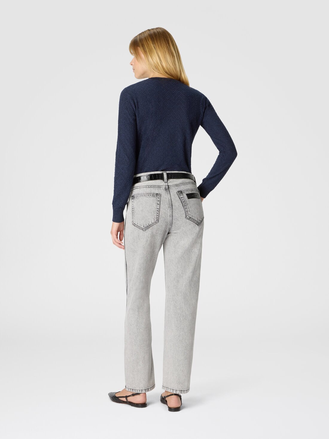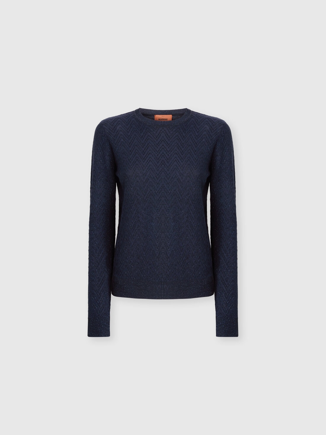 A garment with an essential and distinctive character. This women's long-sleeved crew neck sweater in a cotton and viscose blend stands out for its solid-color jacquard weave enriched with a chevron pattern, an iconic sign of Missoni style.