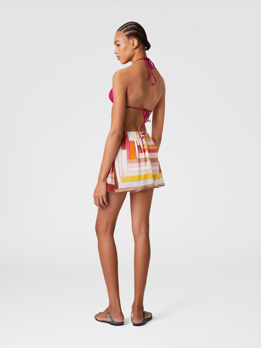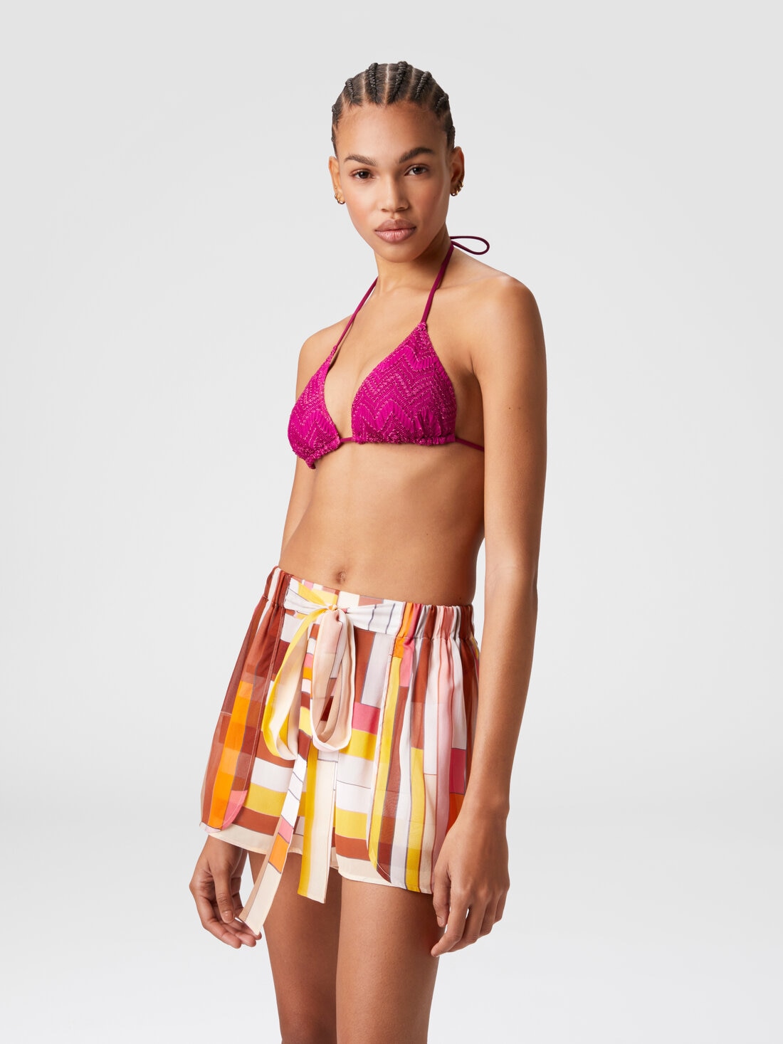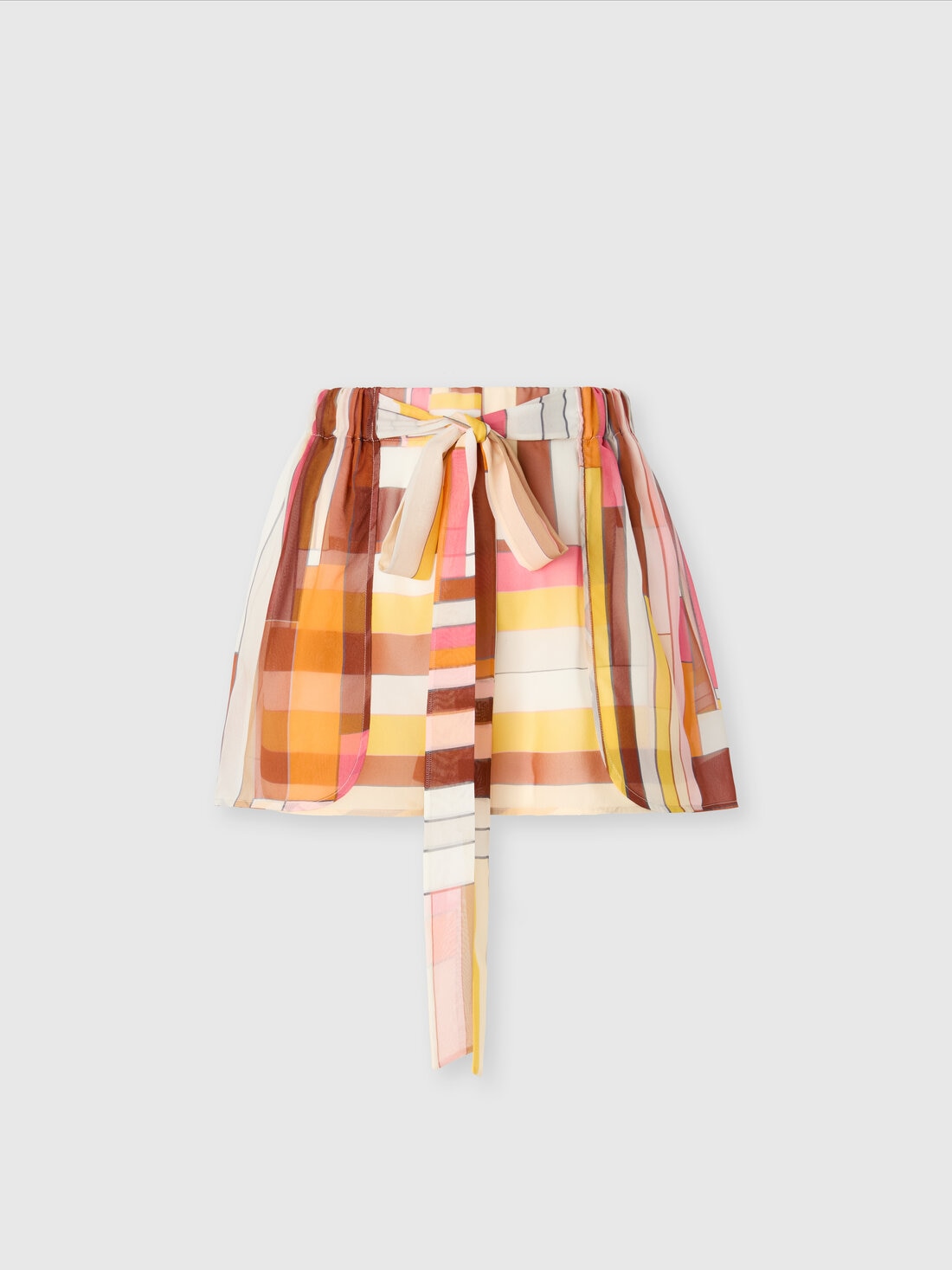These zigzag printed silk cover-up shorts combine freshness and design in an iconic piece. The waist belt enhances the silhouette, while the lightweight fabric and vibrant pattern add a touch of playful elegance. Perfect for an informal but refined summer look, which does not give up sartorial quality.
