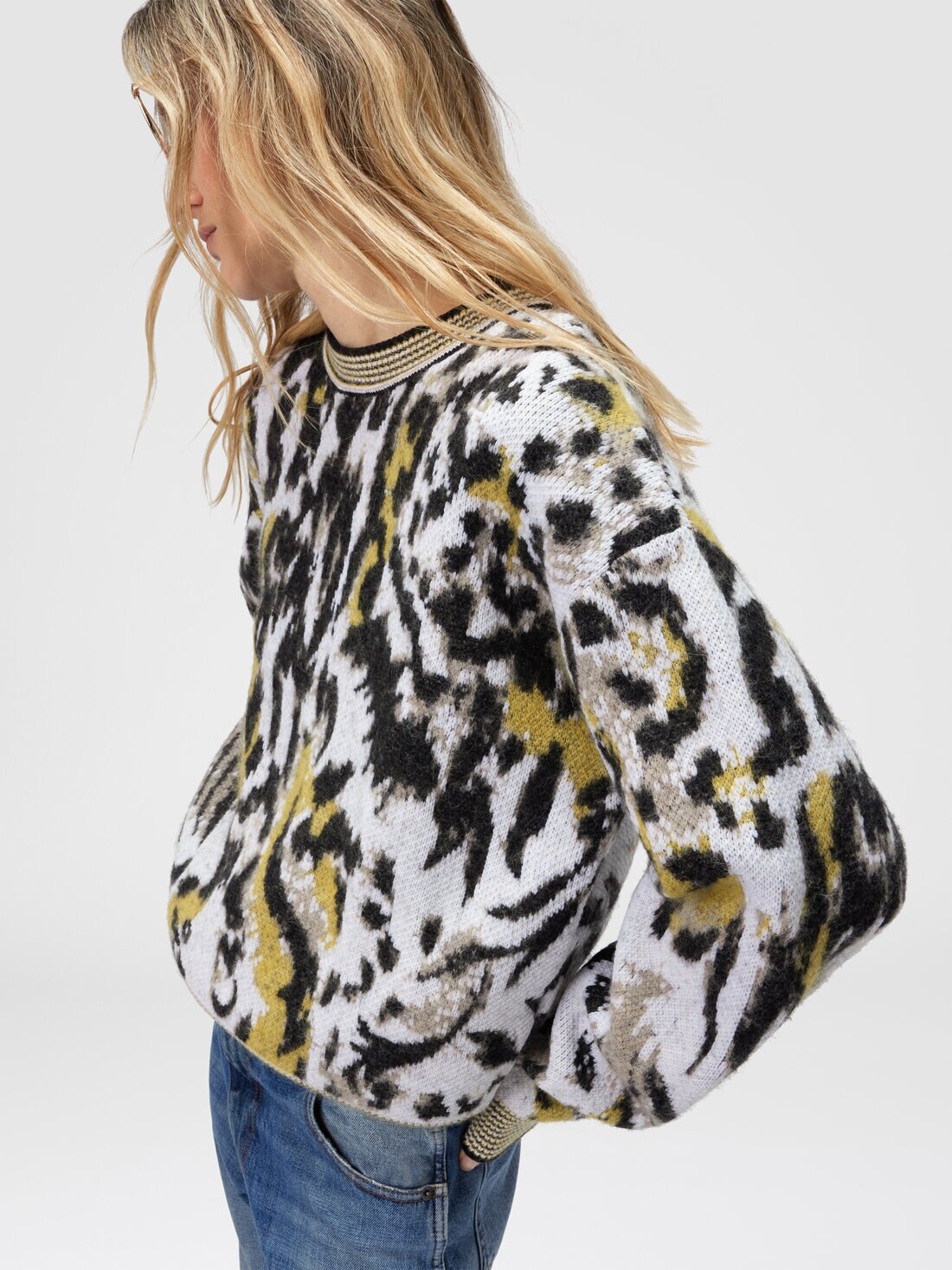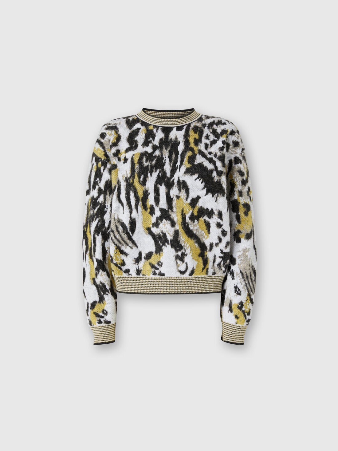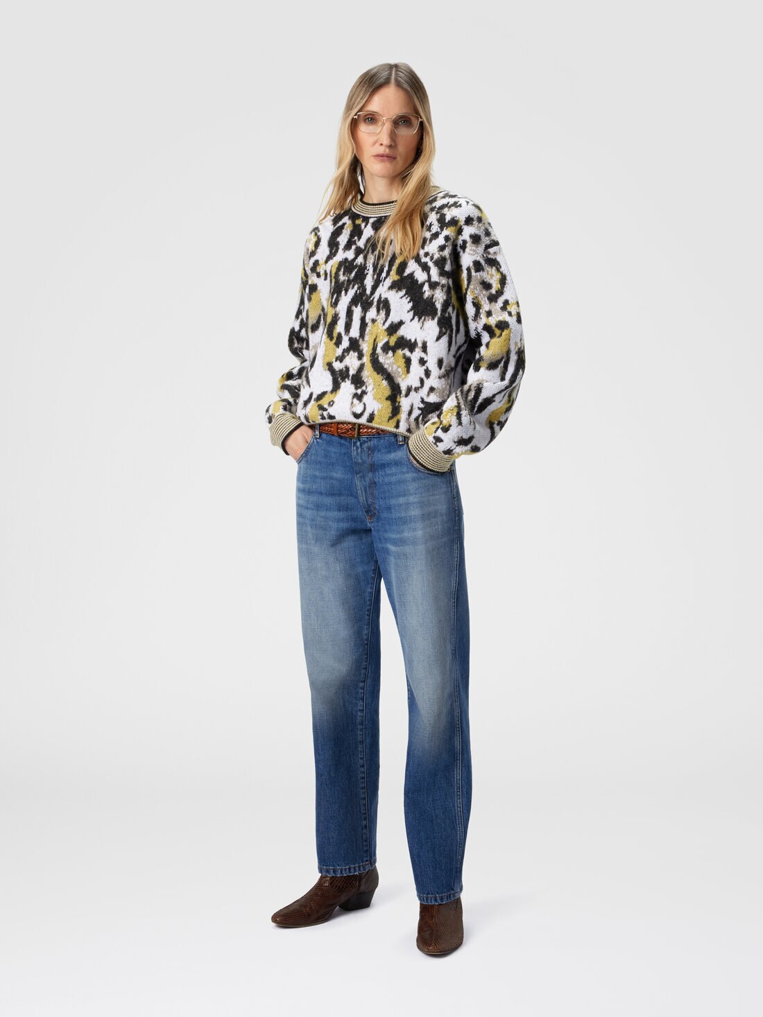 An expression of Missoni’s craftsmanship and expertise, this boxy long-sleeve women’s crew-neck sweater is made from alpaca blend, featuring an animalier pattern. The refinement of the materials and artisanal workmanship give the garment a soft and warm texture, while the bold and original motif adds a touch of personality and unique style.