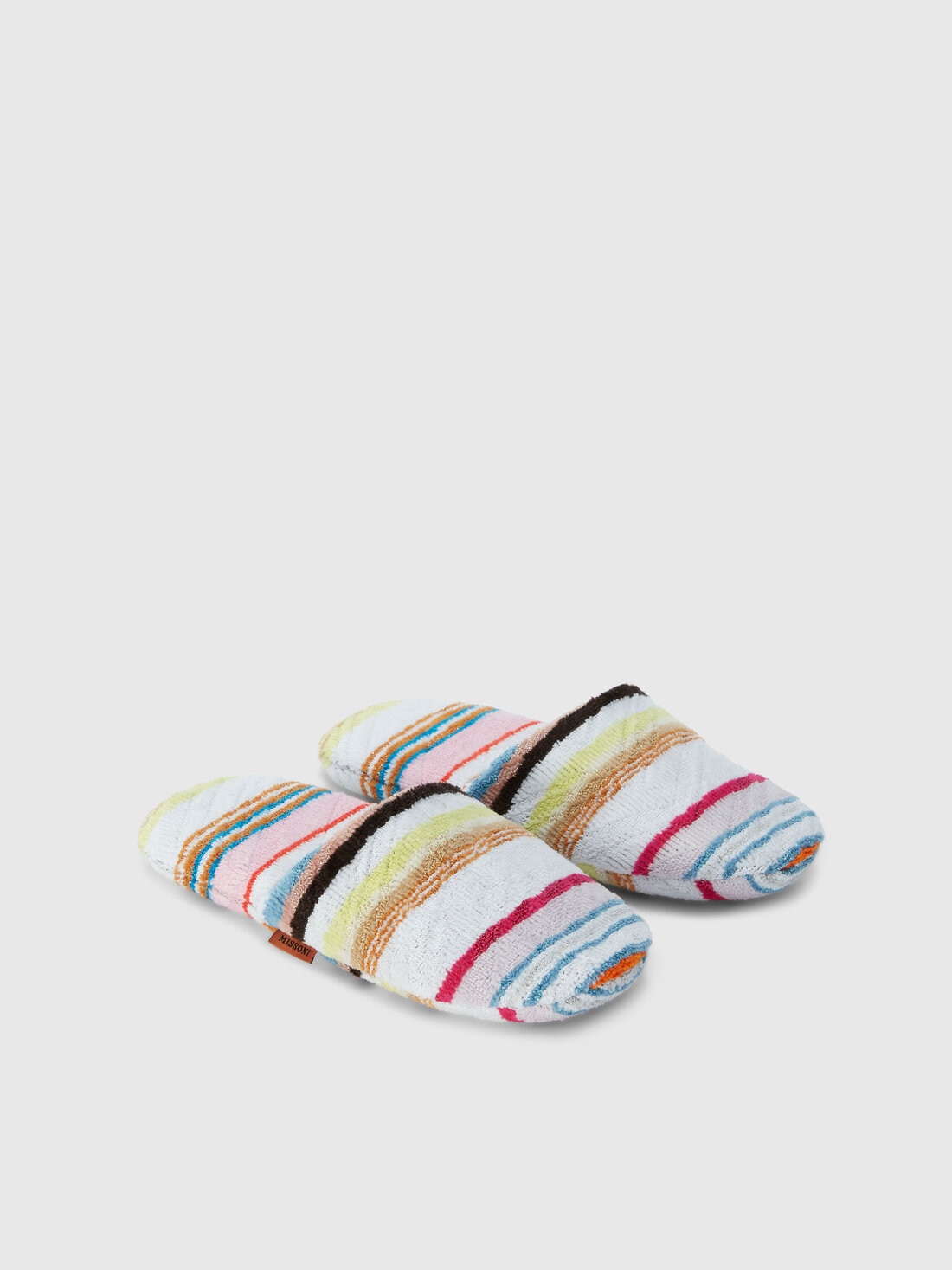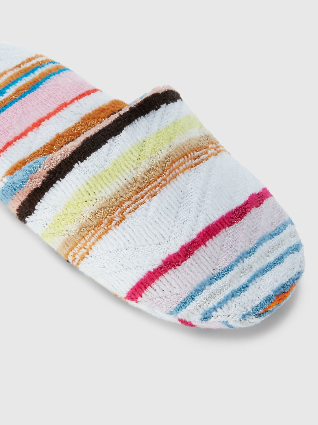 Moonshadow slippers made by MissoniHome offer cosy comfort thanks to their extreme softness. The cotton terry is enriched with lurex threads, which add a touch of brightness. The elegant MissoniHome logo label completes the design.