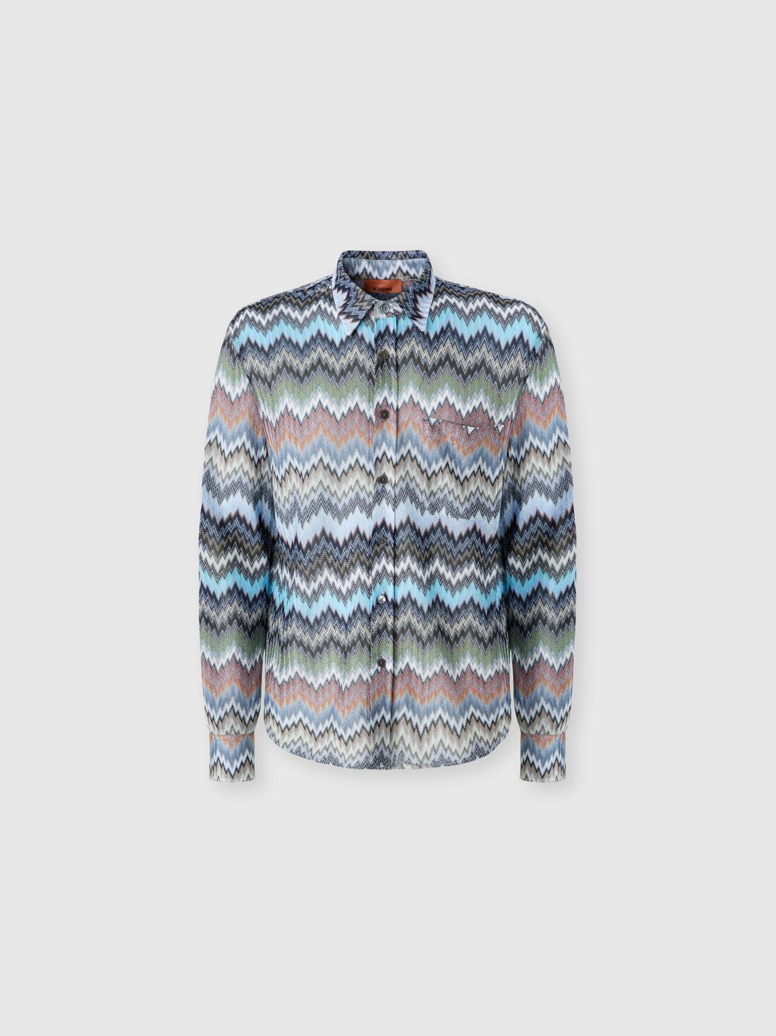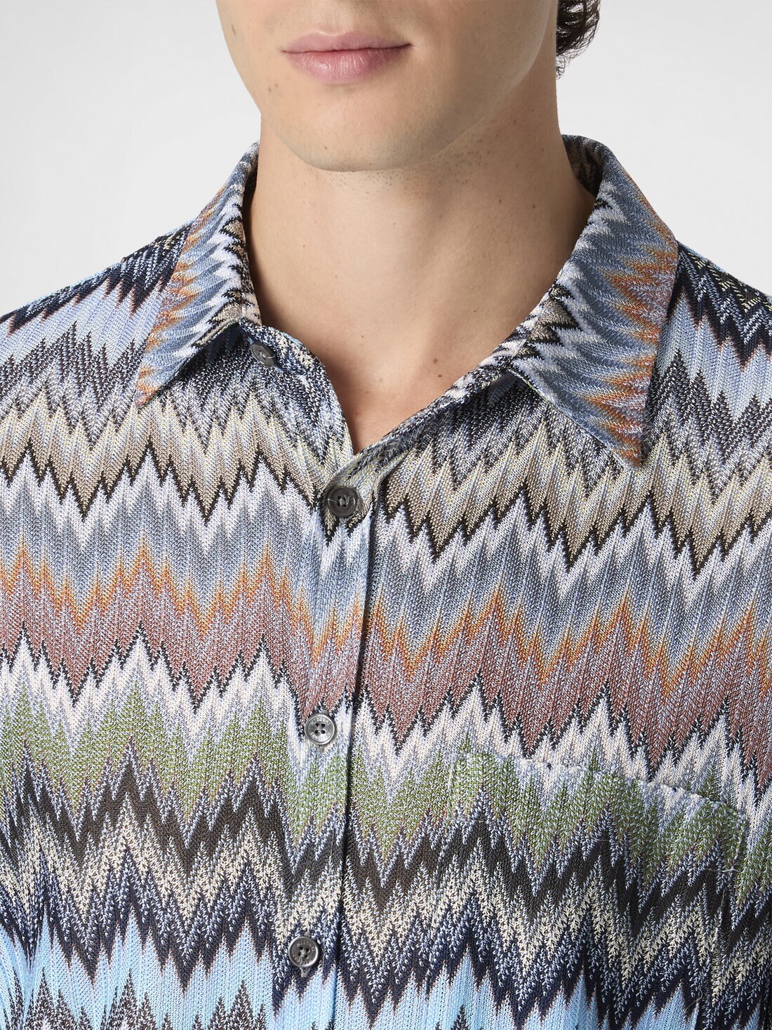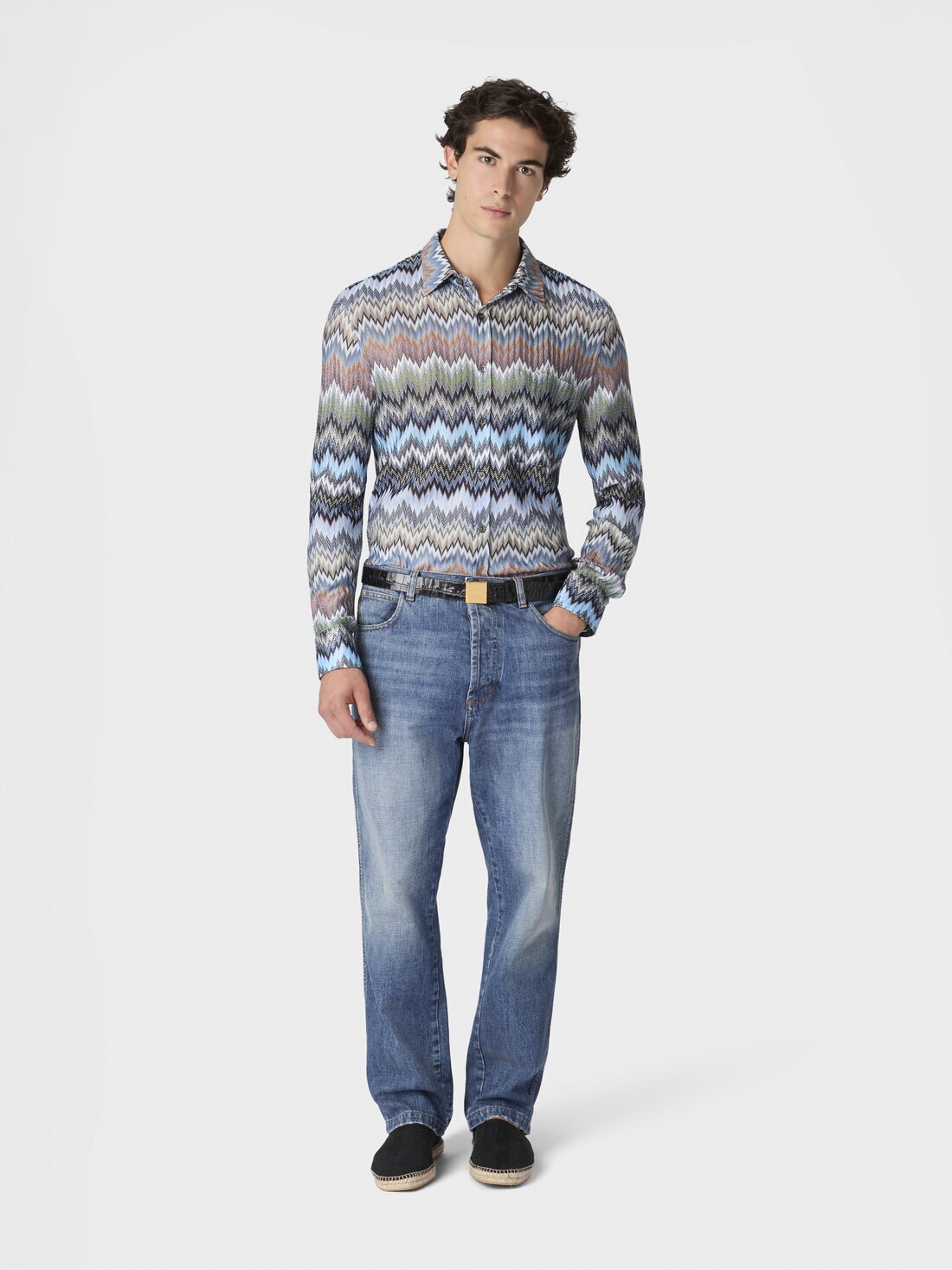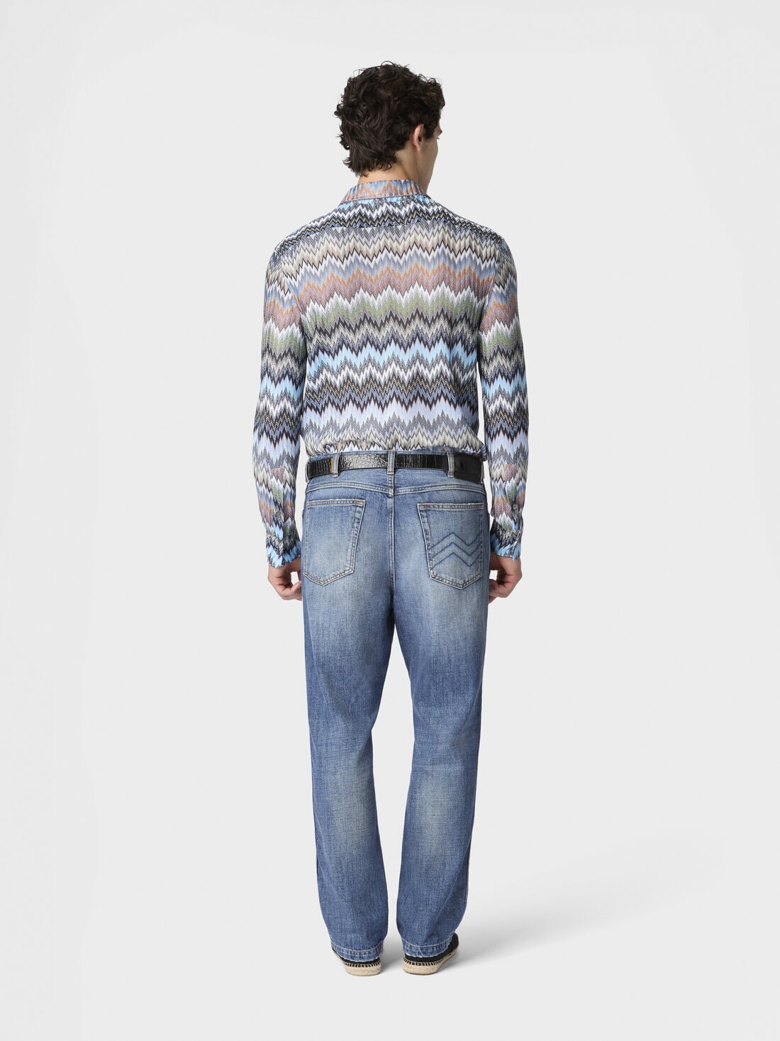 The raschel workmanship enhances the chevron snake motif that animates this long-sleeved men’s viscose shirt, giving it depth and movement. A piece that reflects the balance between textile creativity and artisanal mastery, hallmarks of the maison.