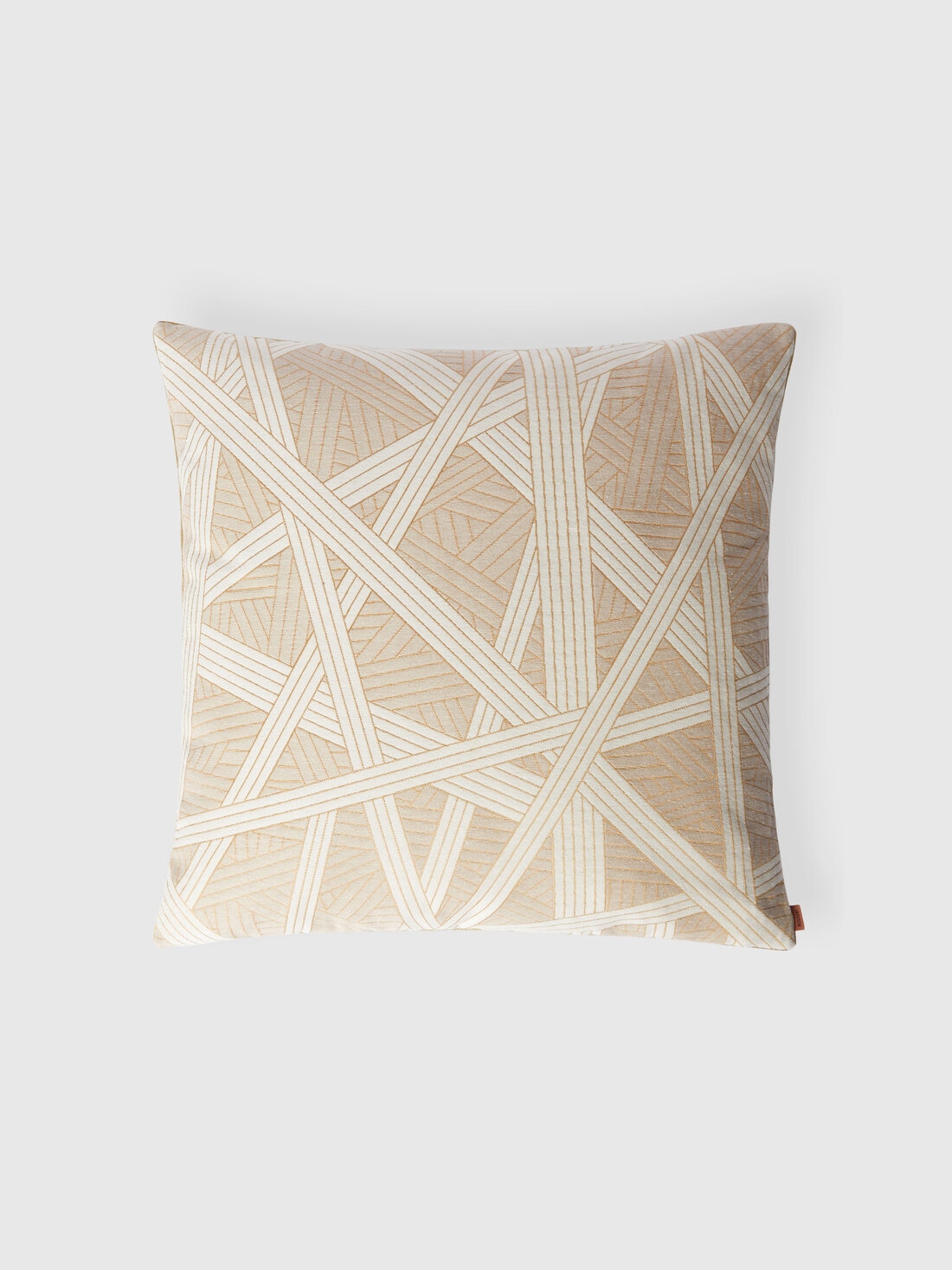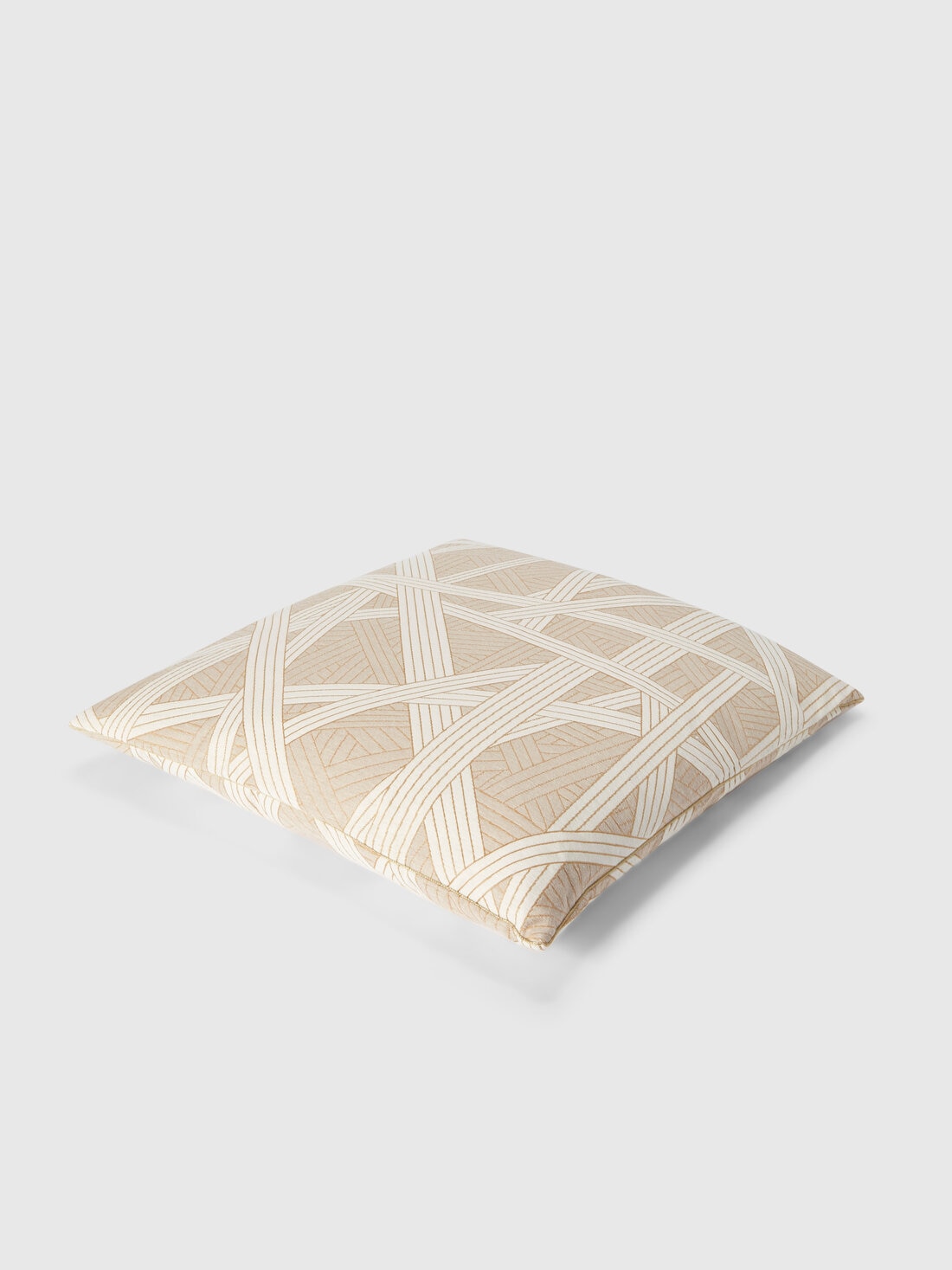 The Nastri cushion, measuring 60x60 cm, features contrasting gold stitching. Complete with an elegant logo label, the cushion offers a sophisticated design and refined details, adding a touch of luxury and style to any room.