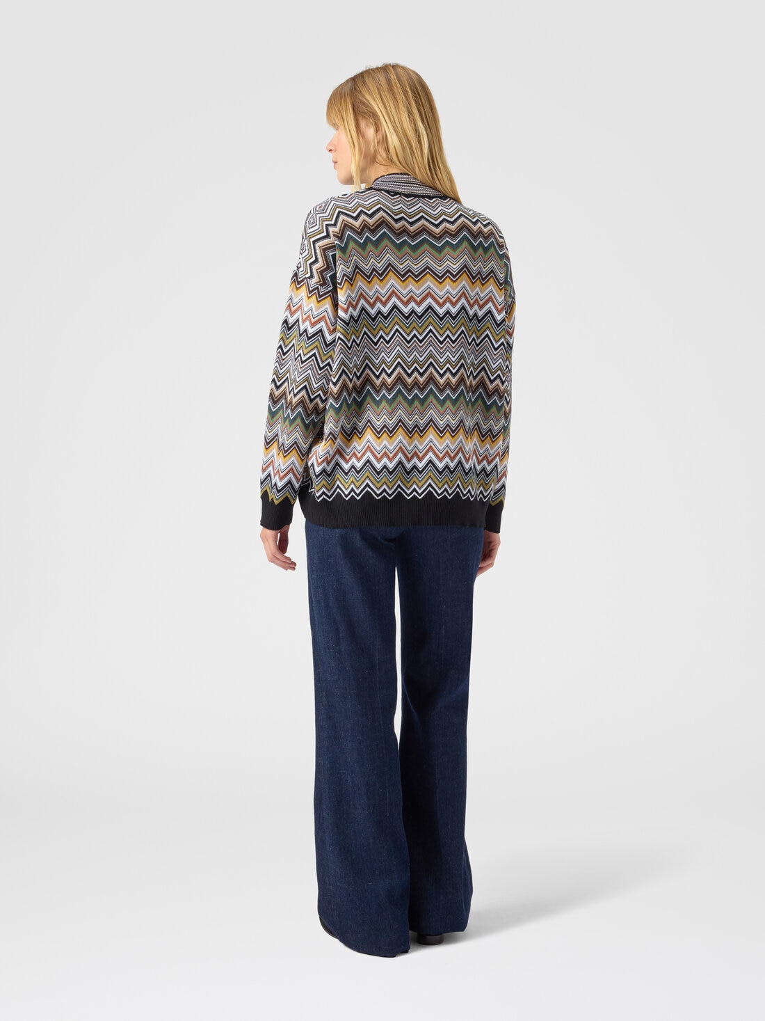 Oversized turtleneck long-sleeve women’s sweater, made from wool and viscose blend, with Missoni’s iconic chevron motif. The distinctive workmanship and wide silhouette create a perfect balance between comfort and style, making this piece a must-have for an elegant and contemporary look.